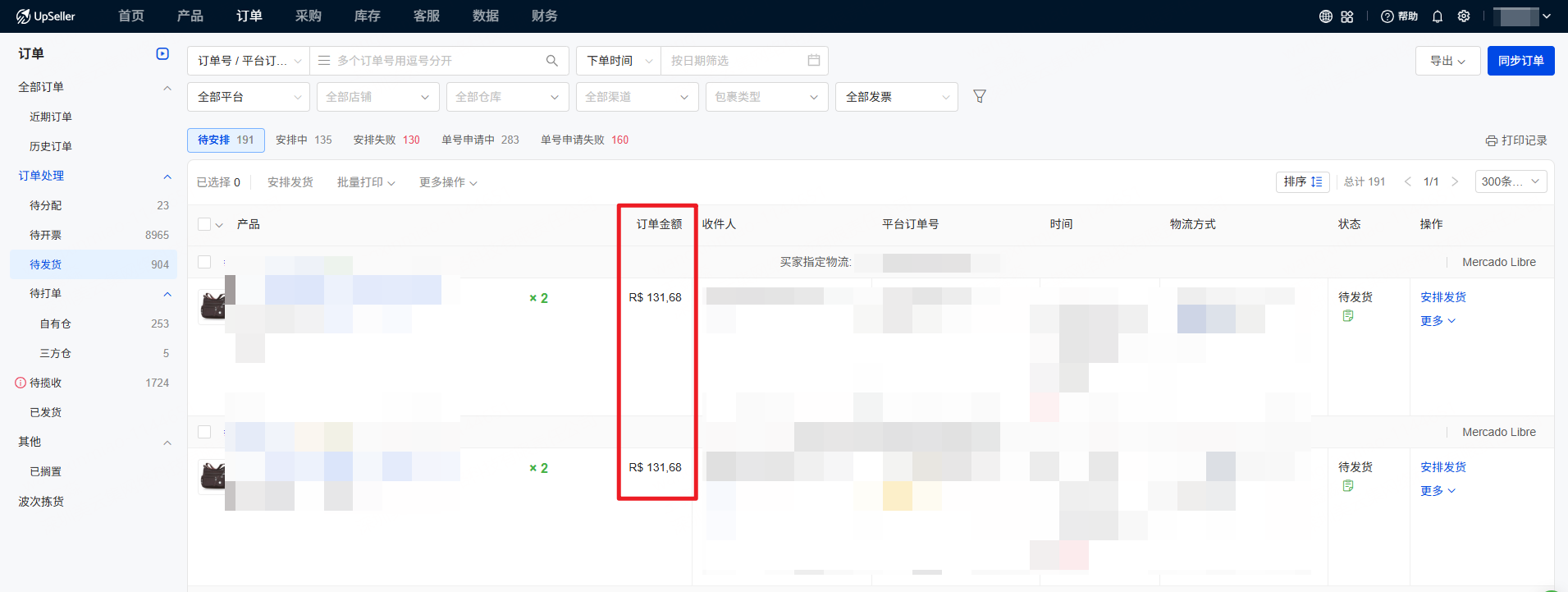 卖家实际收到的金额可能与列表上的订单金额不一致,因为卖家实际收到的金额会受运费,平台佣金,巴西用户还会收到税额等数值的影响