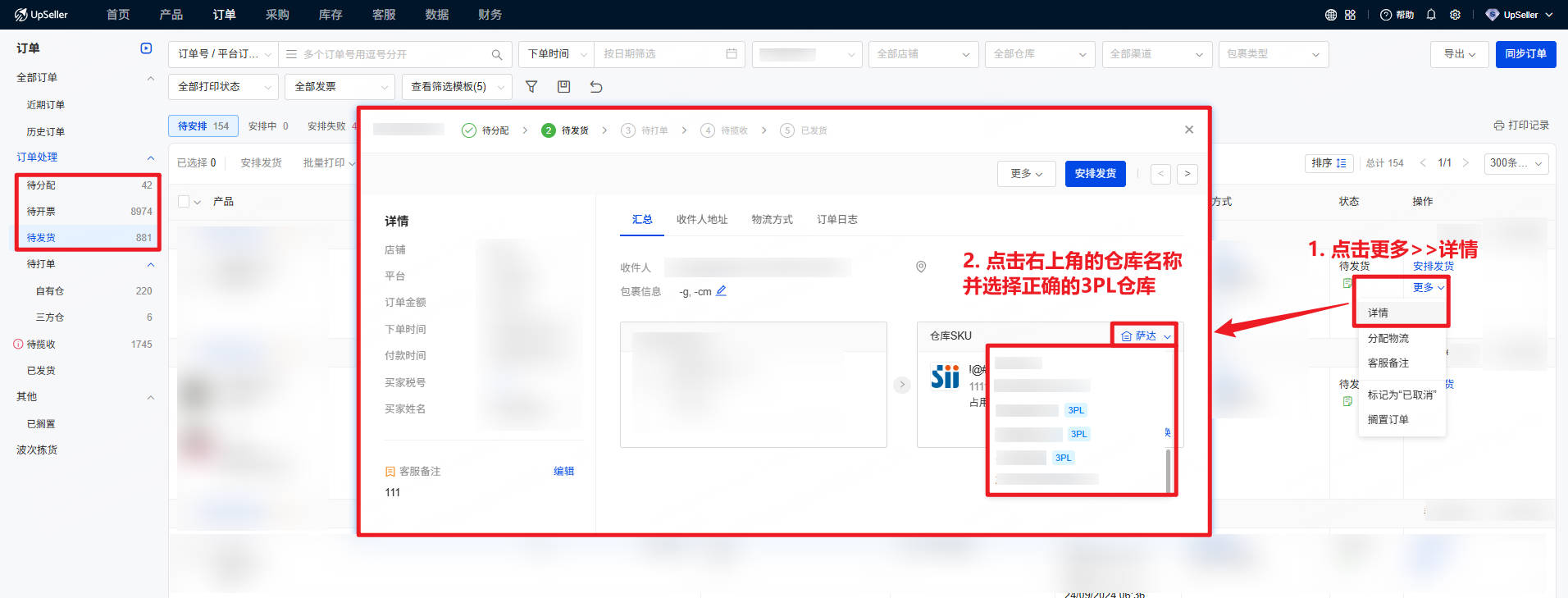 注意:处理三方仓订单前,需确保已开启【库存扣减】功能!!!具体操作>>https://www.upseller.com/zh-CN/doc-article/1224一、解决方案