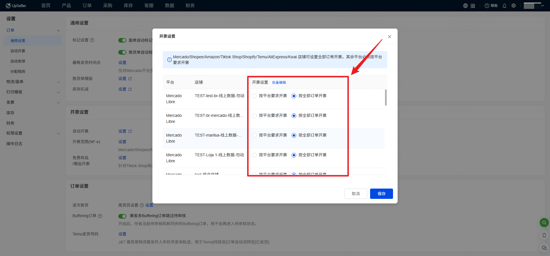 ⚠️ 启用后,新同步到 UpSeller 的订单将进入【待开票】状态。