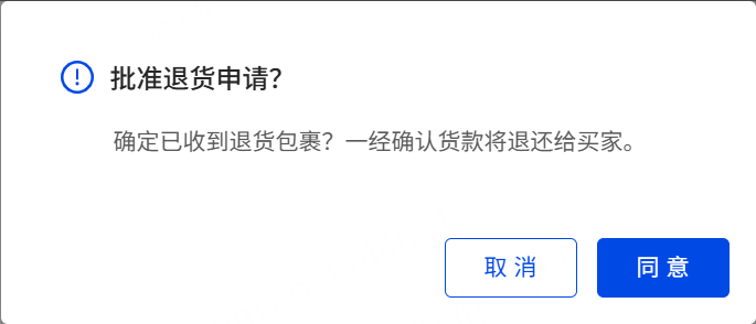 ②核发退款:将弹窗展示是否批准退货申请,同意后订单将进入 已解决 状态