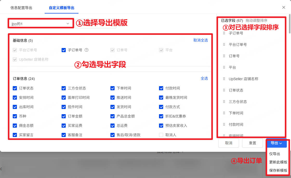 一、UpSeller 订单导出功能的作用 订单导出支持导出所有同步到UpSeller的订单数据,可用于核对、分析销售数据,计算成本利润等 二、支持两种订单导出的形式 ① 导出所选订单:导出该页勾选中的订单 ② 导出全部页订单:导出当前状态下全部页的订单 三、注意事项