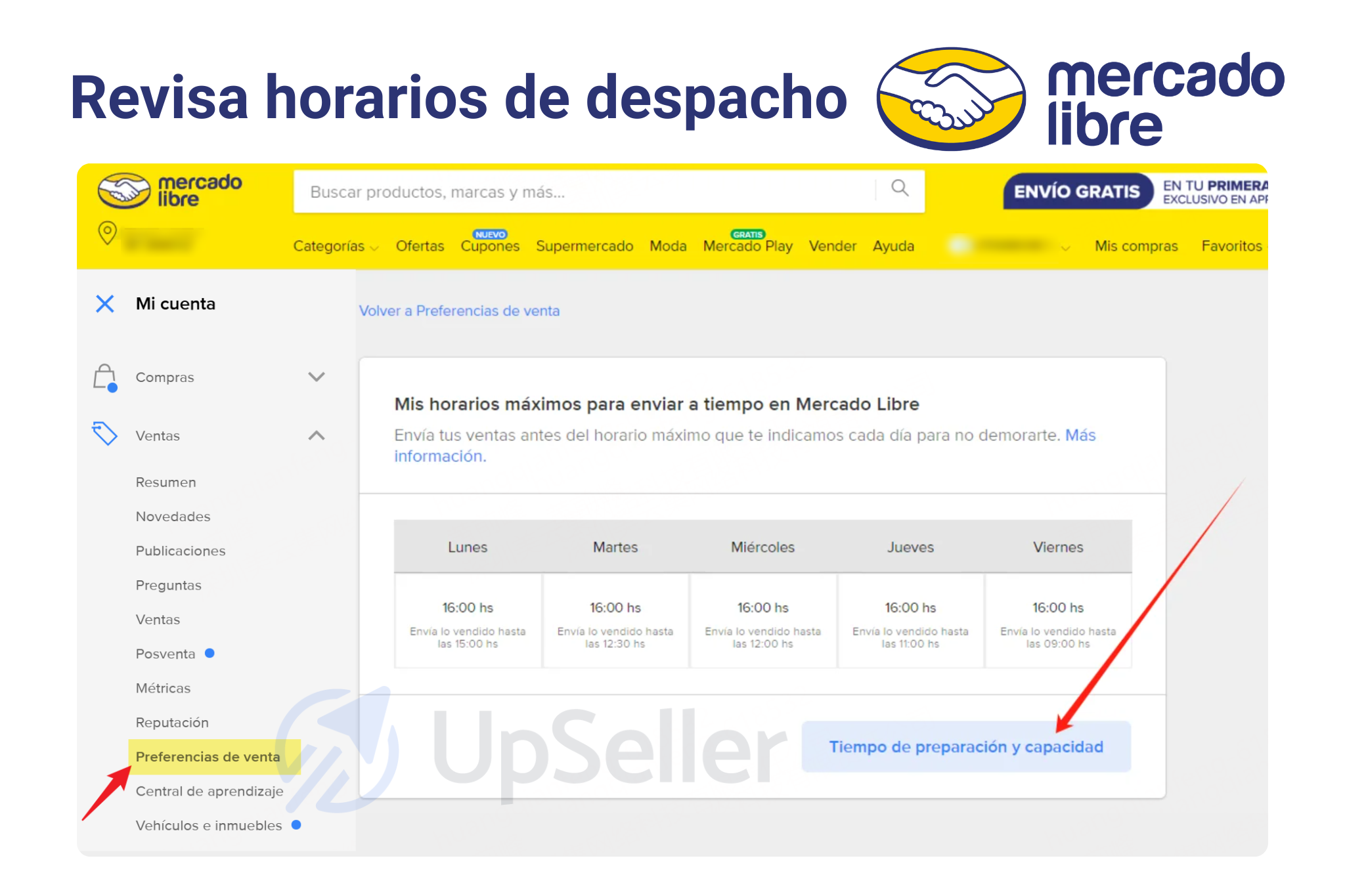 En Preferencias de venta, Mercado Libre muestra tu configuración logística y los tiempos que aplican durante la semana. Aquí puedes entender mejor: