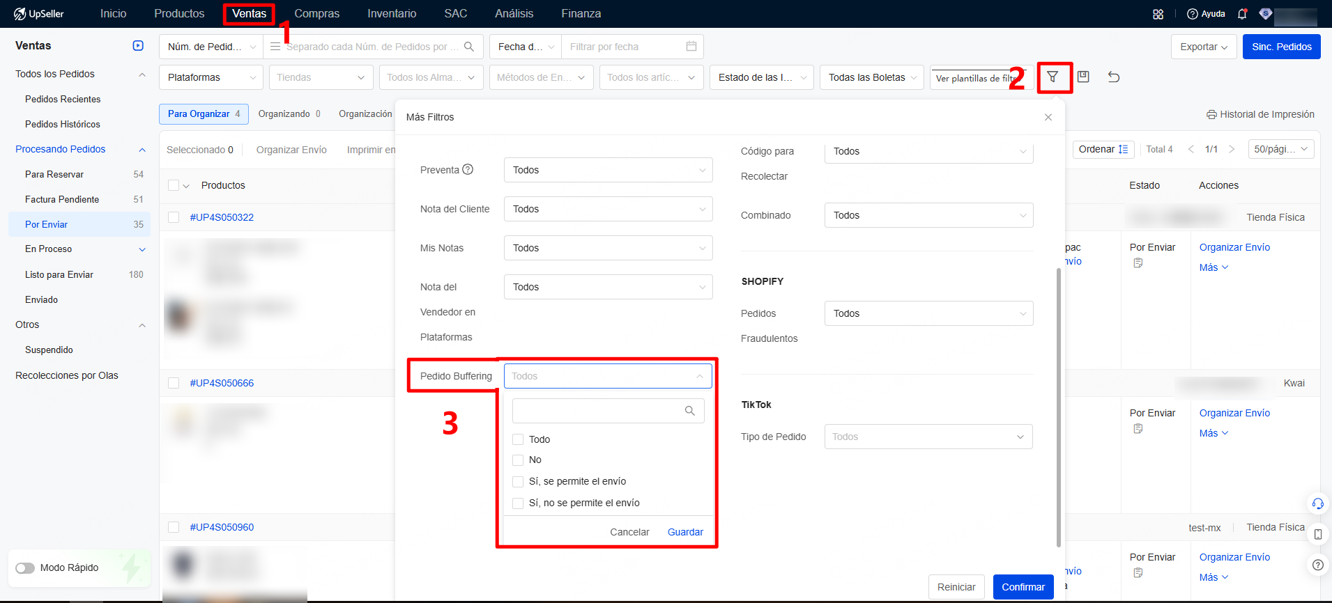 [Ventas] Permite filtrar pedidos Buffering según si se permite el envío en la lista de pedidos