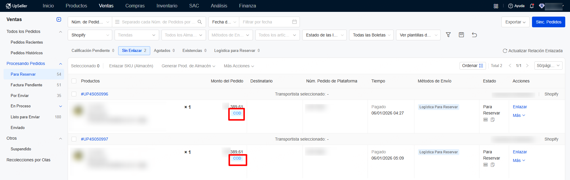 [Ventas] Permite gestionar pedidos con pago contra entrega (COD) de Shopify y Tiendanube