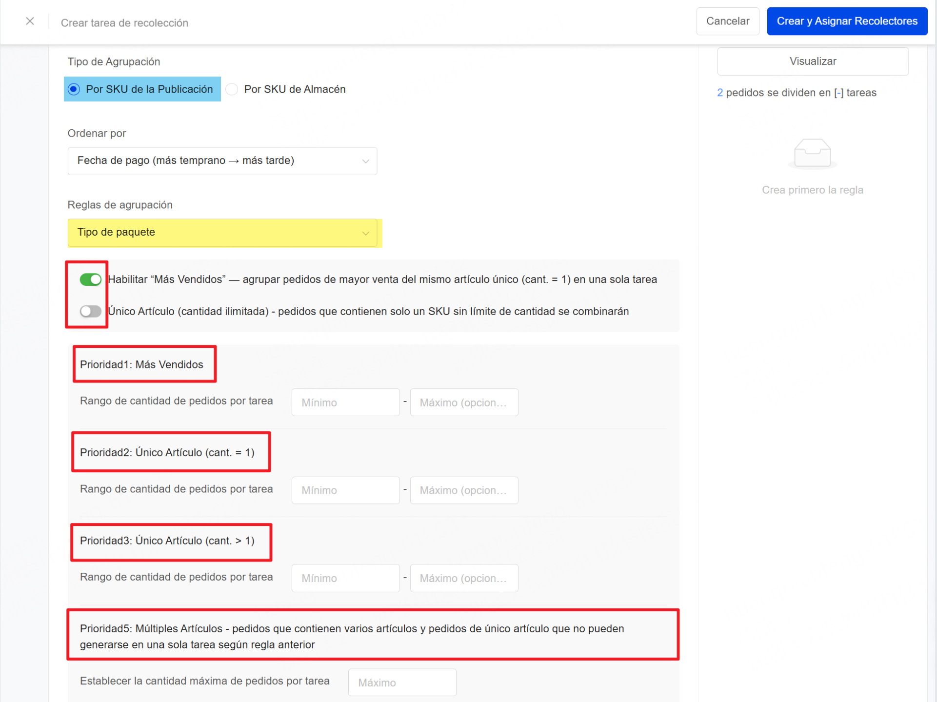 [Ventas] Mejora en Recolección por Olas que ahora permite agrupar pedidos de mayor venta del mismo artículo y priorizar su procesamiento