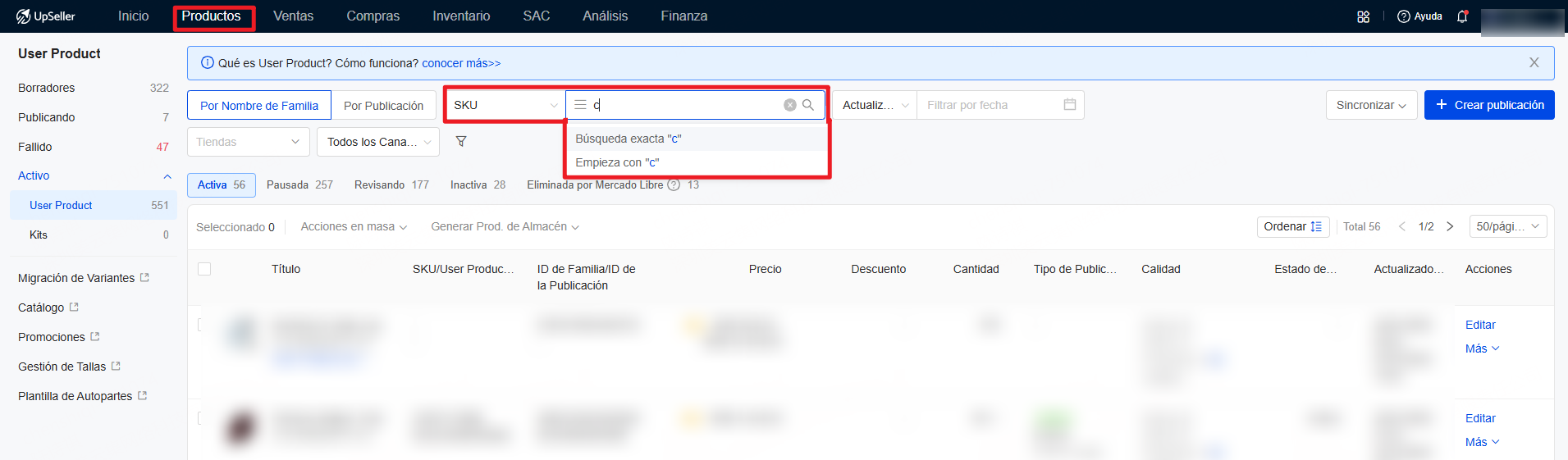 [Productos] Permite la búsqueda difusa en la lista de publicaciones de MELI