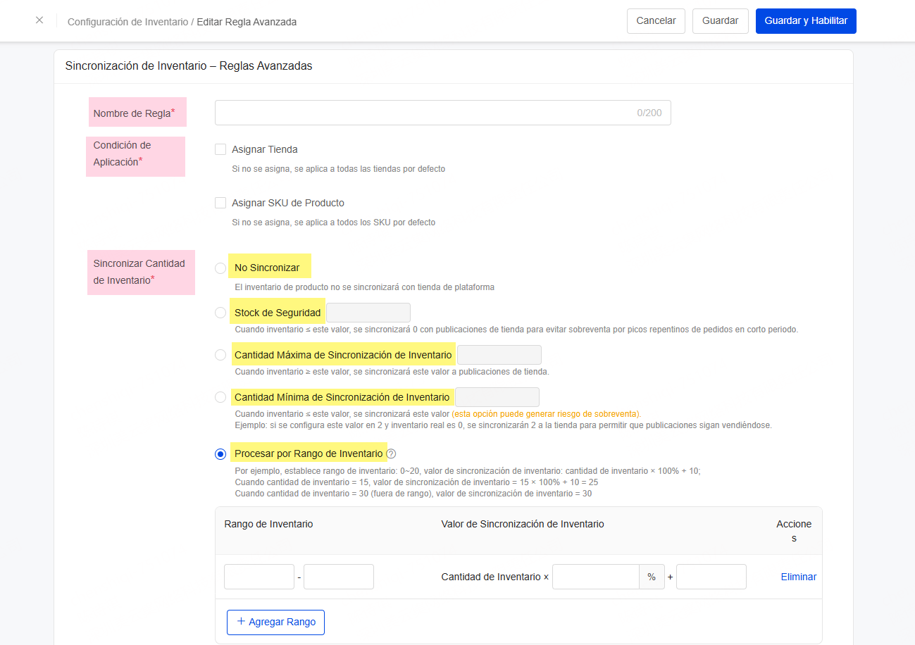 [Inventario] Permite configurar Reglas Avanzadas de sincronización de inventario: define estrategias por tienda o por SKU, y establece stock de seguridad independiente para cada producto. Reduce el riesgo de sobreventa y gestiona tu inventario de forma más precisa