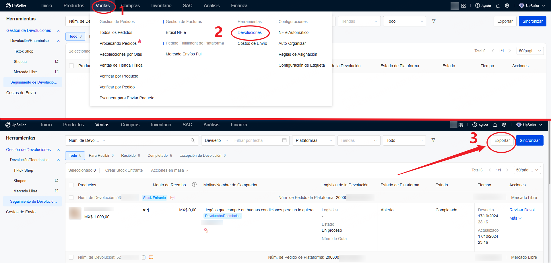 [Ventas] Permite incluir el SKU de almacén en la exportación del Seguimiento de Devoluciones, facilitando la gestión de ingresos de devoluciones