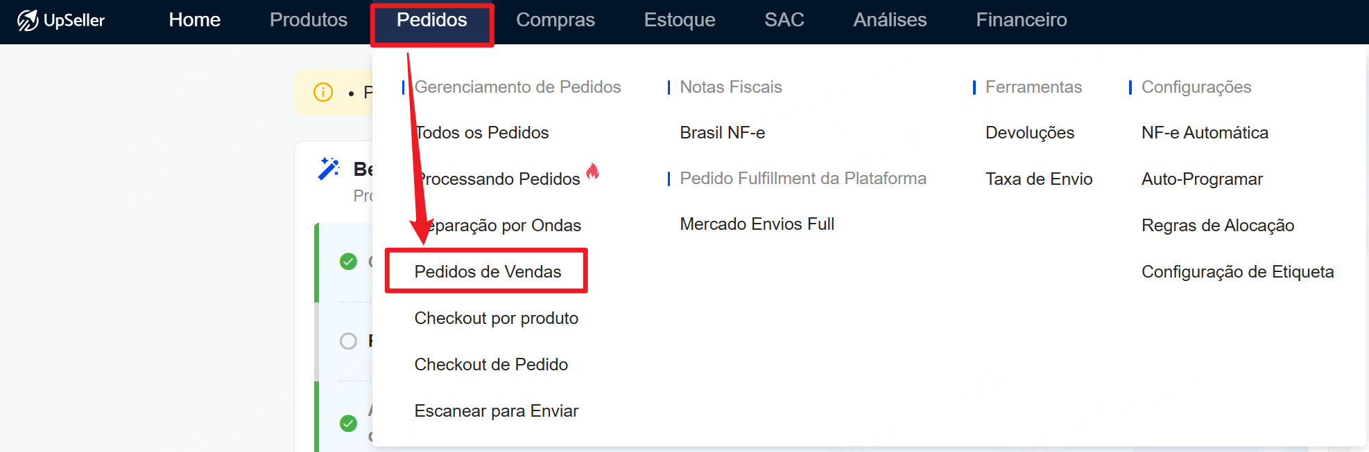 Passo 1: Entre no módulo de Pedidos >> Clique em Pedidos de Vendas
