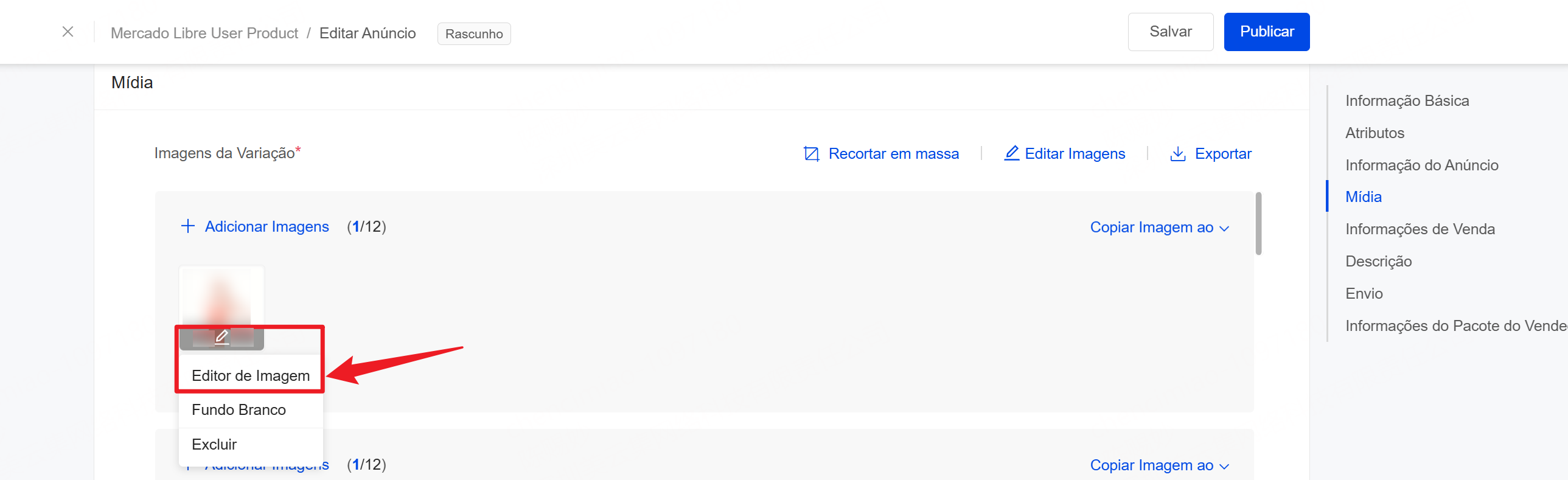 (2) Na página de edição >> Localizar a imagem e clicar em "Editor de Imagem"