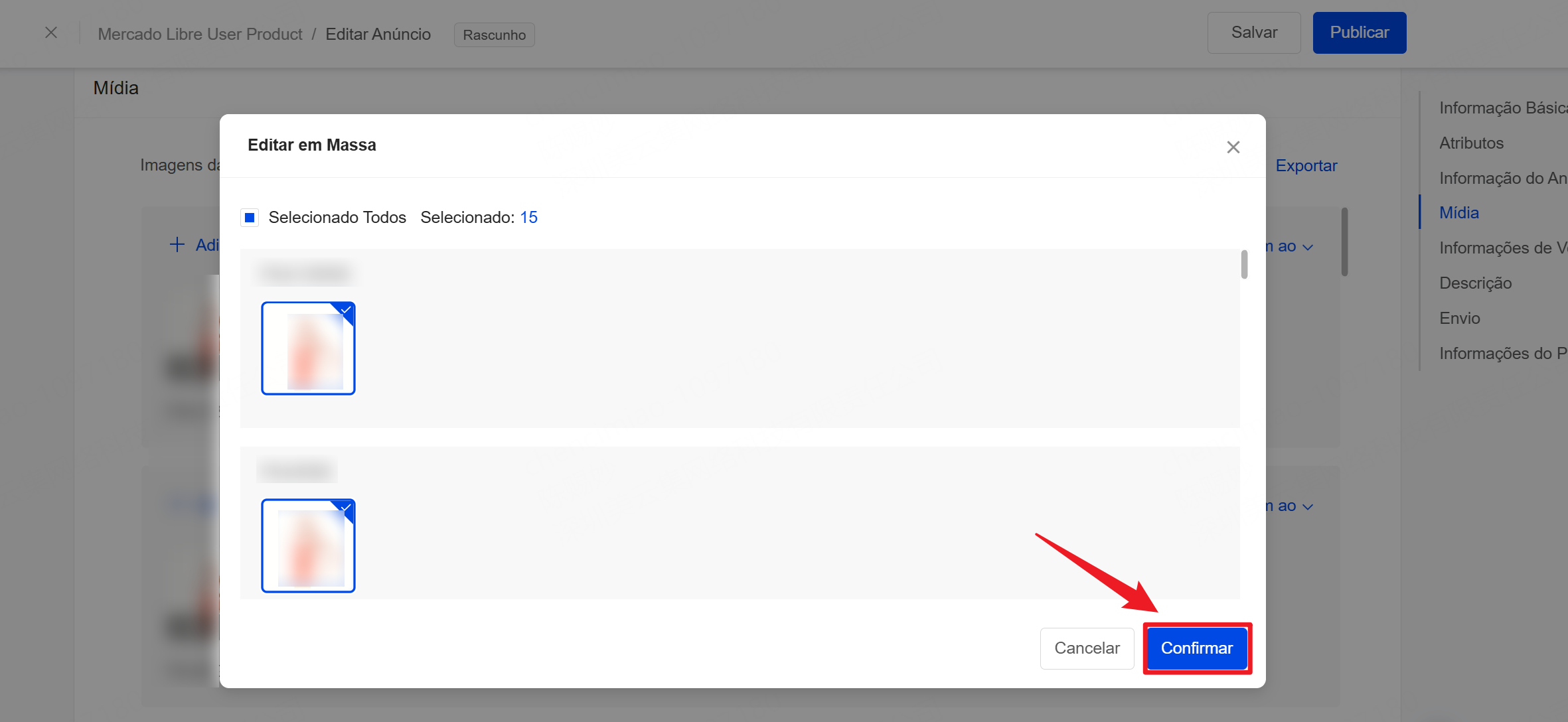 (2) Selecionar as imagens desejadas >> Confirmar para iniciar a edição em massa