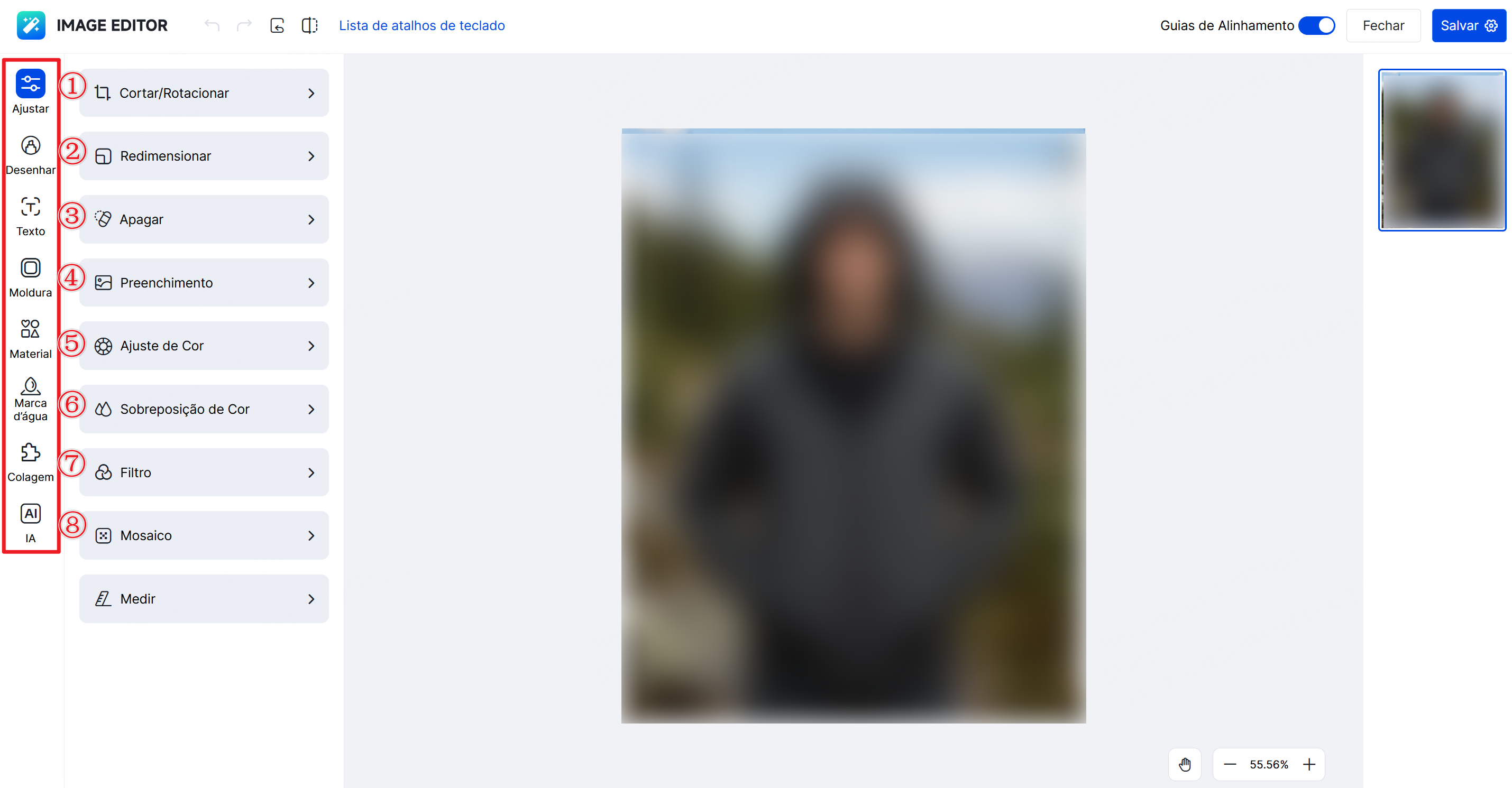(Obs: O recorte inteligente e o fundo branco compartilham a mesma cota diária de uso gratuito)