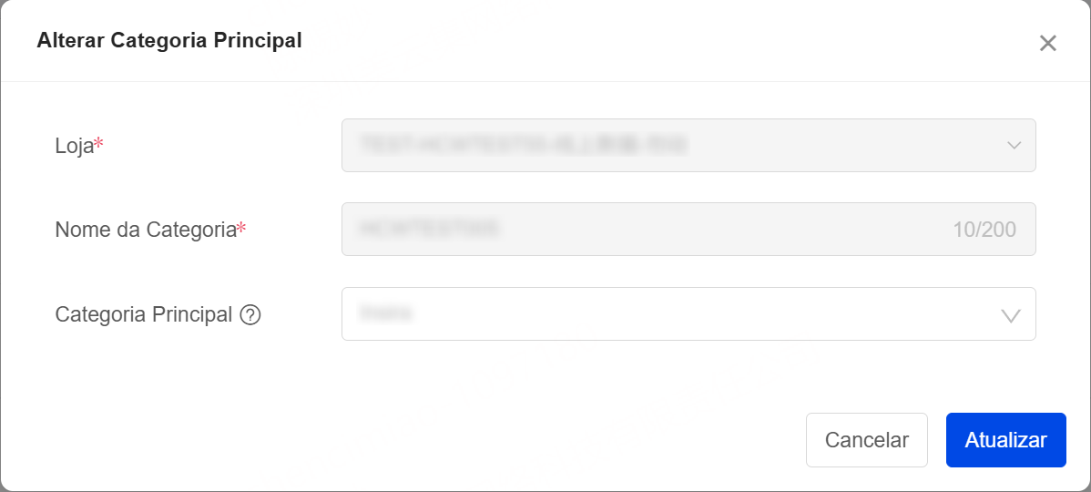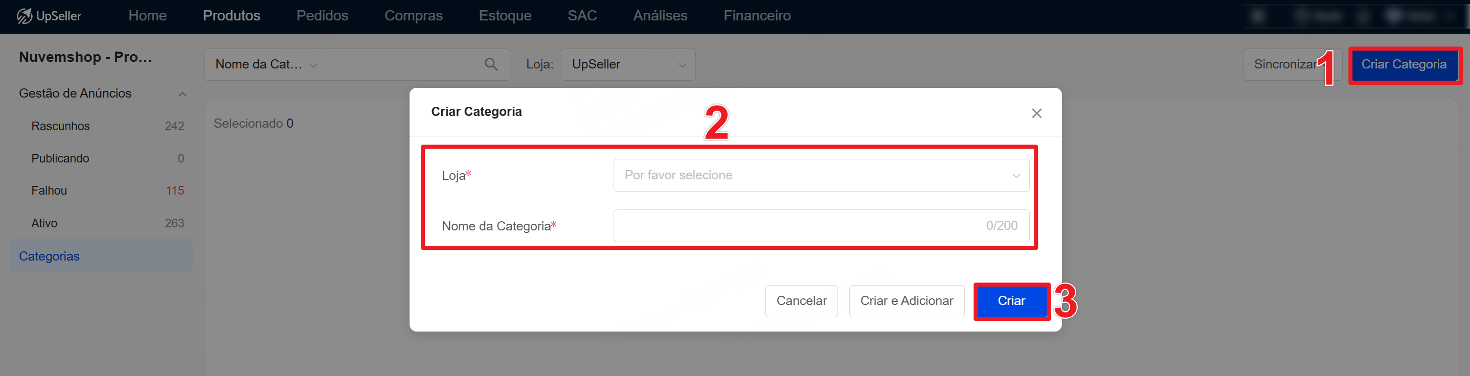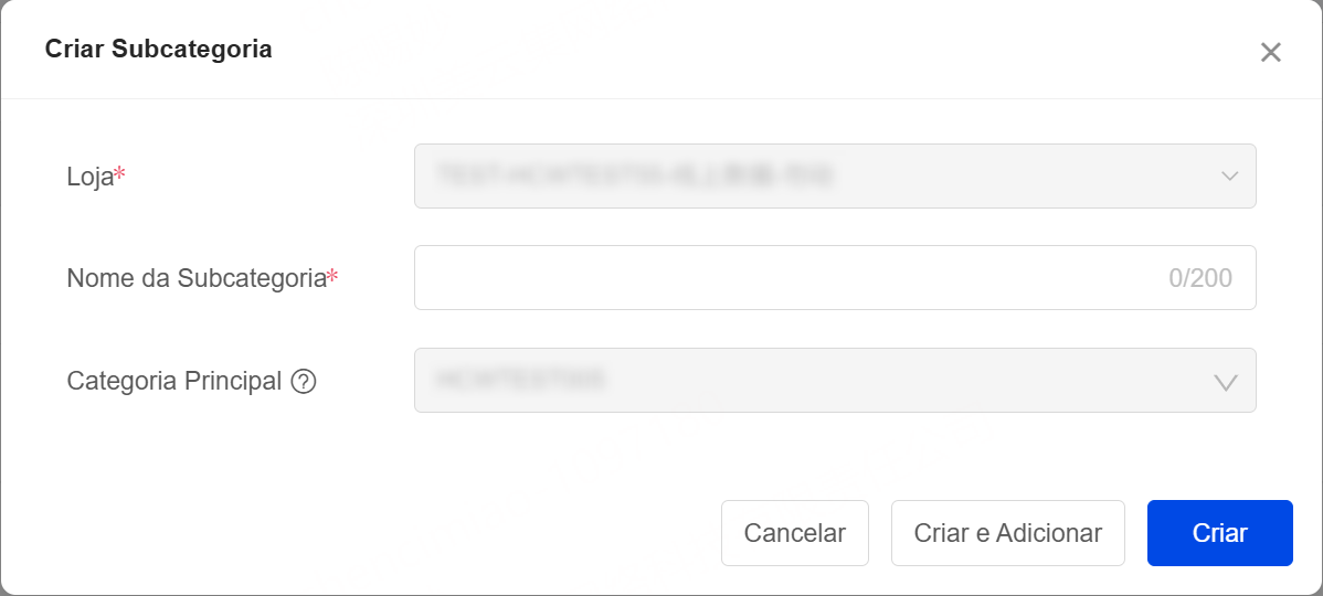 Clique em Criar categoria >> Selecione a loja e preencha o nome da categoria >> Crie uma nova categoria primária.