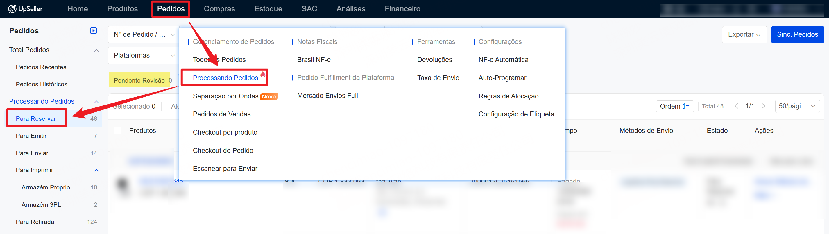 Pedidos >> Processando Pedidos >> Para Reservar >> Pendente Revisão