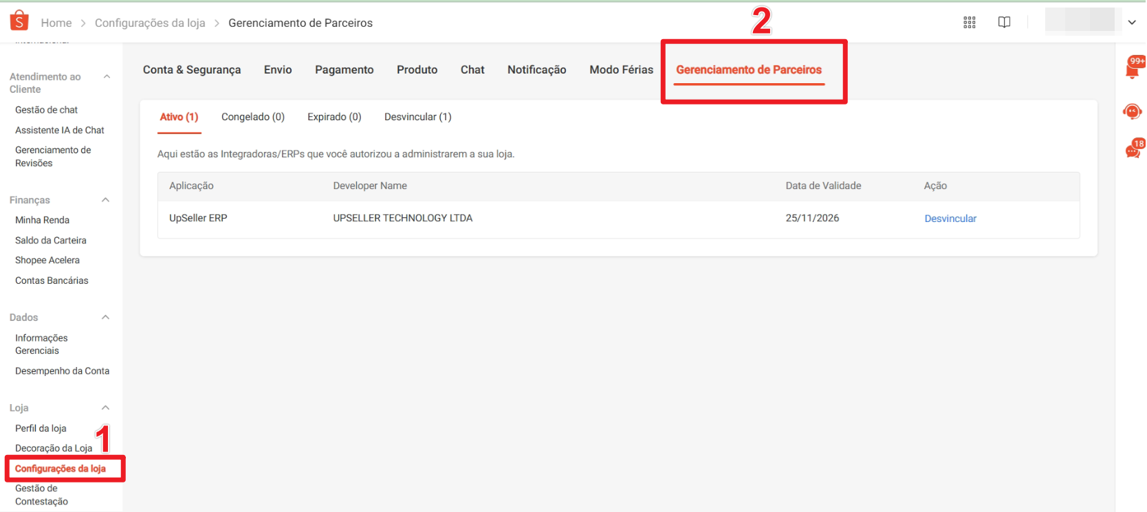 Acesse o Shopee Seller Center, clique em Configurações da Loja >> Gerenciamento de Parceiros, e você poderá visualizar.
