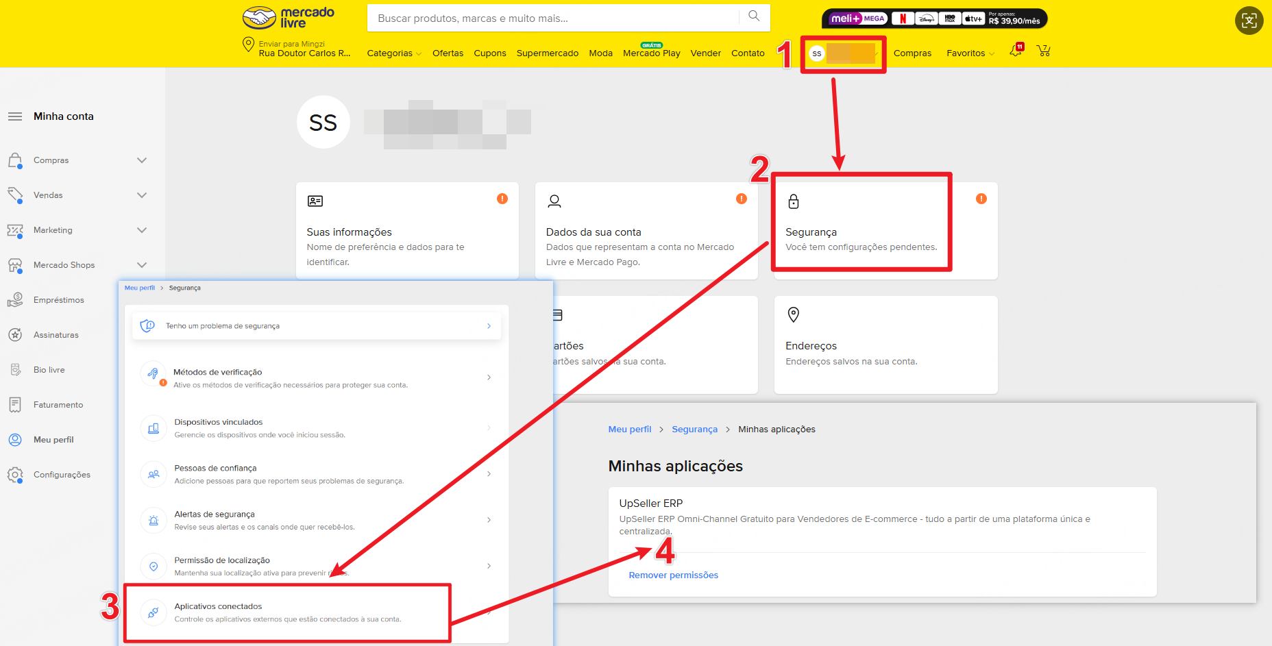 Acesse o Mercado Livre Seller Center, clique em Meu perfil >> Segurança>> Aplicativos conectados, e você poderá visualizar.
