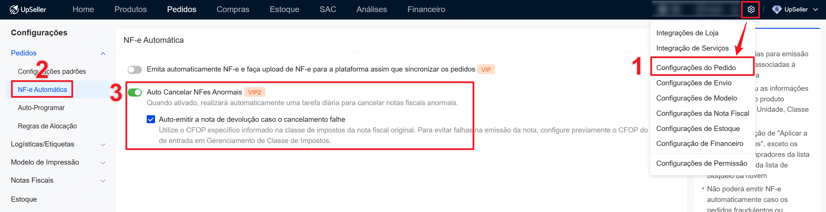 Passo 1: Ativar a funcionalidade de "Auto Cancelar NFes Anormais"