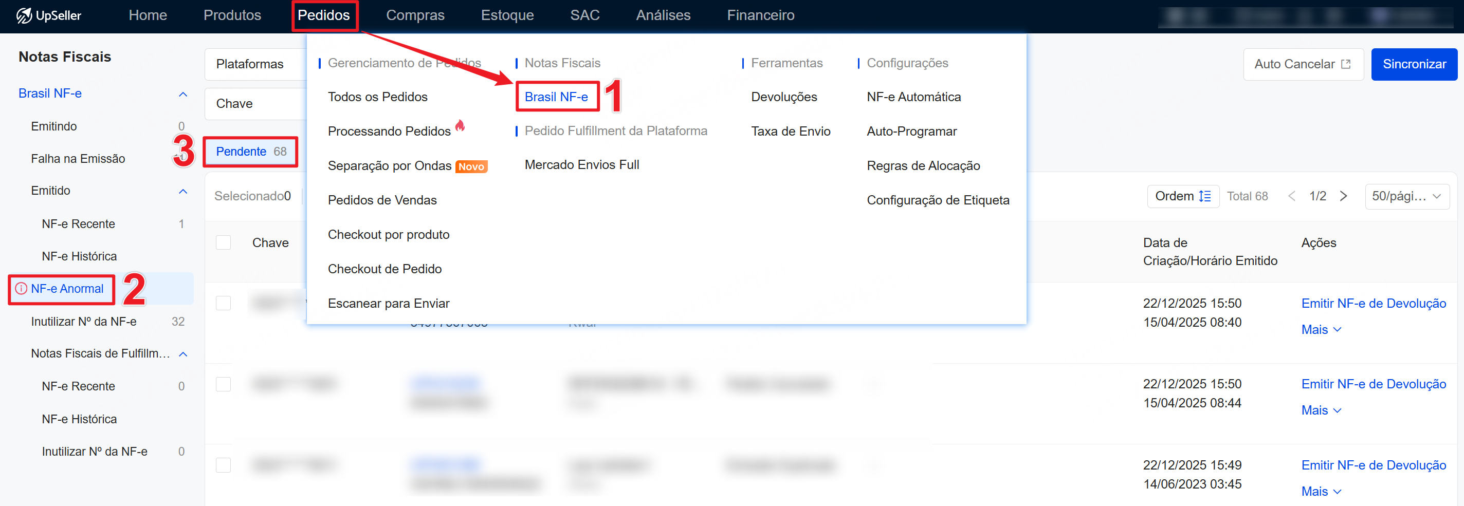 Após ativar o cancelamento automático, o sistema verificará todas as notas no status "Pendente" na lista de NF-e Anormal.