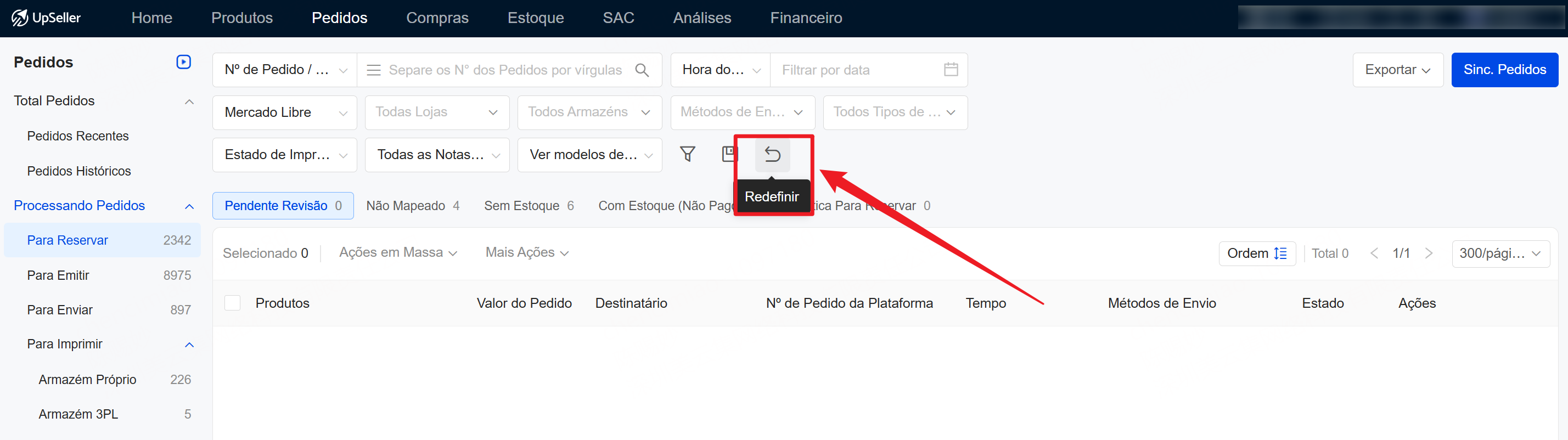 2. Caso seja necessário limpar os critérios do modelo aplicado, clique no botão "Redefinir" para restaurar o estado padrão do filtro.