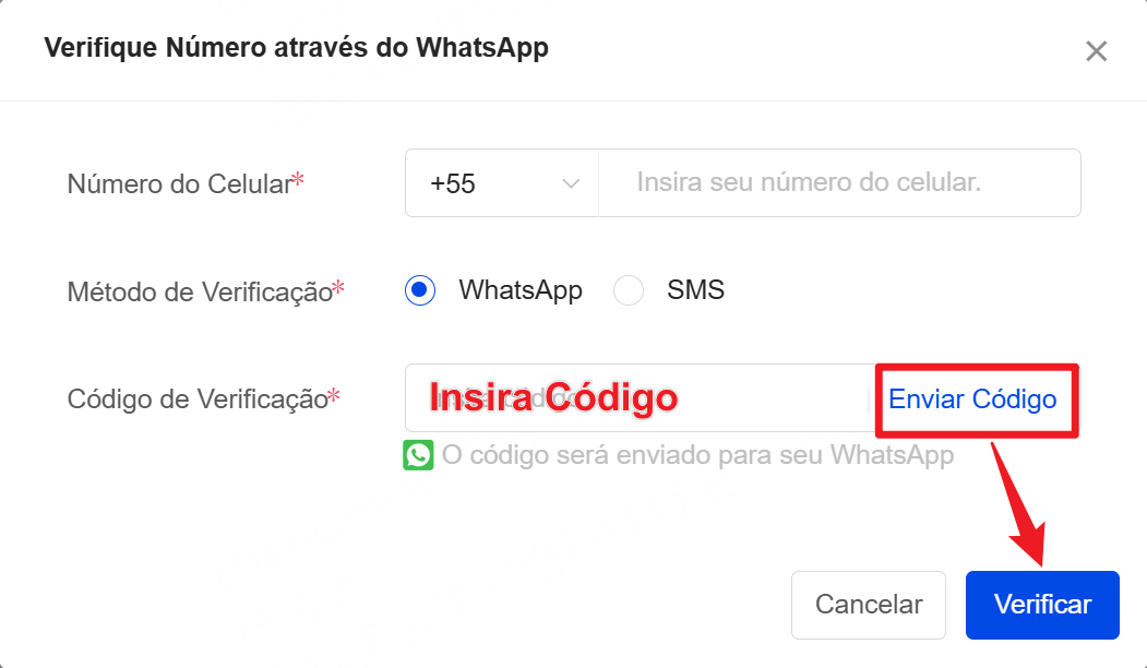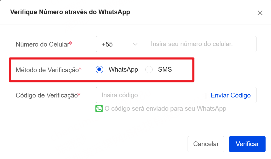 1. Selecione a região do Número do Celular.