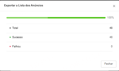 Clique em “Exportar a Lista dos Anúncios” — é permitido exportar no máximo 1.000 anúncios por vez. Após a conclusão da exportação, clique em “Baixar” para obter as informações dos anúncios e realizá-las modificações.
