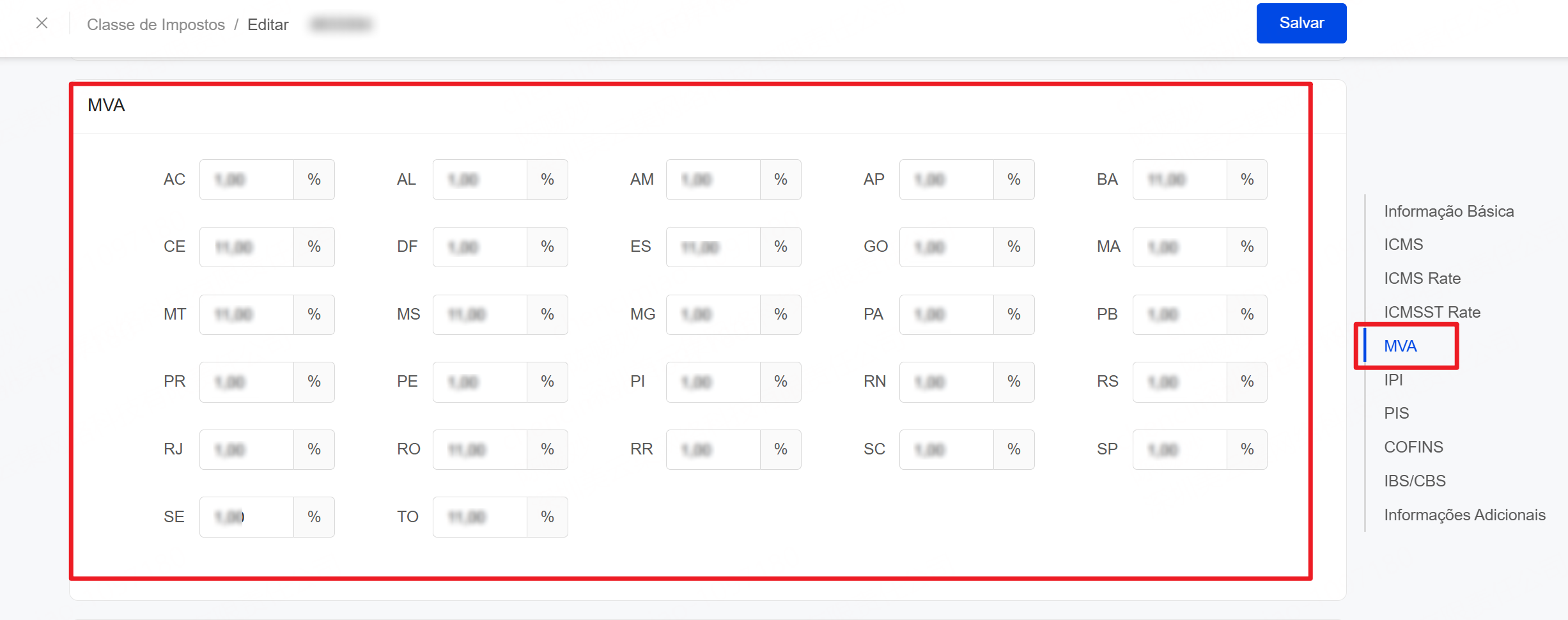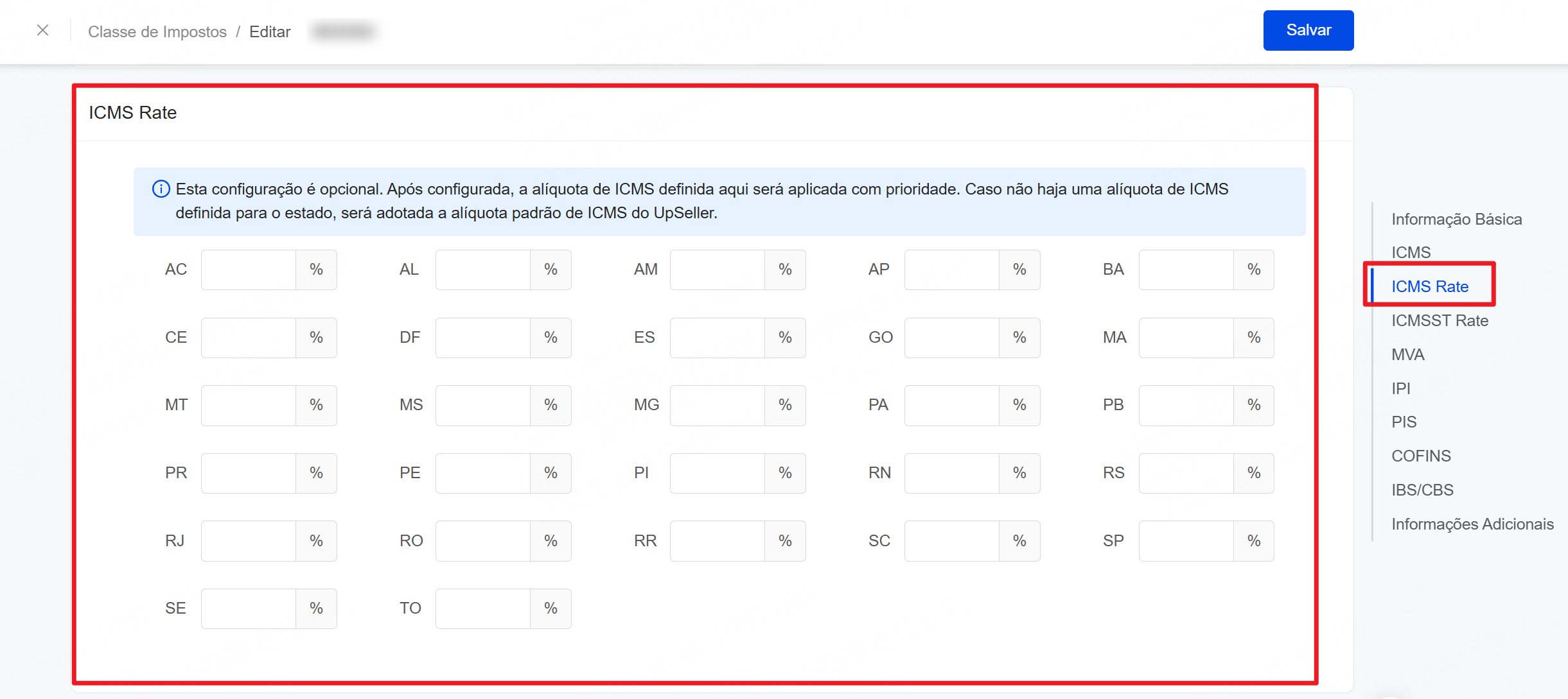 Quando o CST ou CSOSN de qualquer cenário selecionado corresponder aos códigos abaixo, será possível configurar manualmente a alíquota do ICMS e a alíquota do ICMSST.