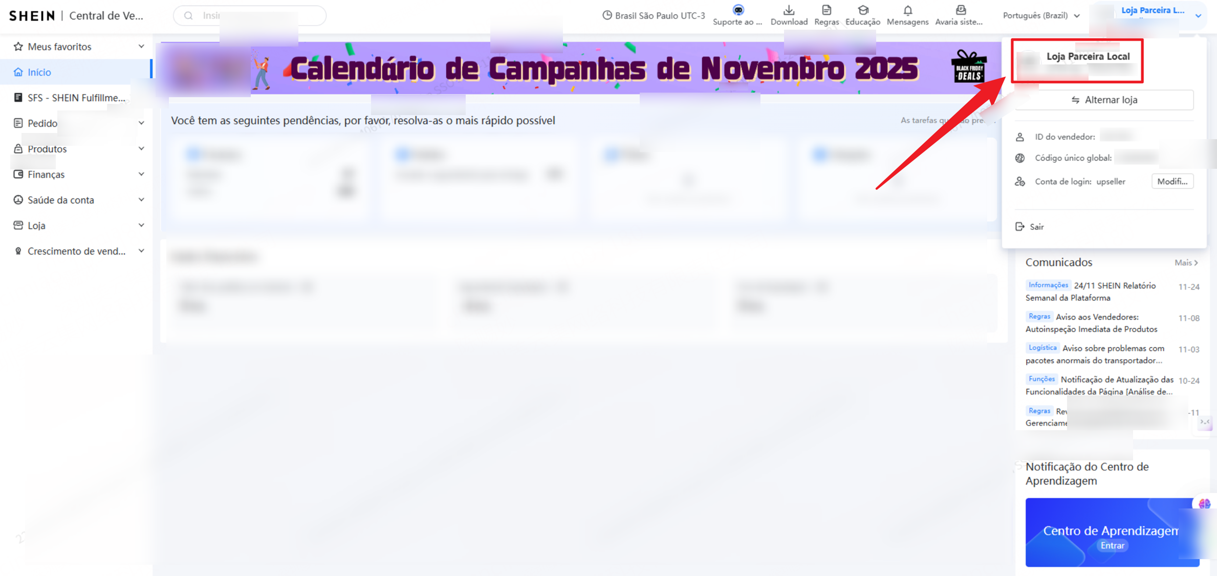 1. No UpSeller, é possível integrar lojas Shein nos sites Brasil e México, incluindo Loja Parceria Local e Lojas Gestão Parcial / Totalmente Gerido.