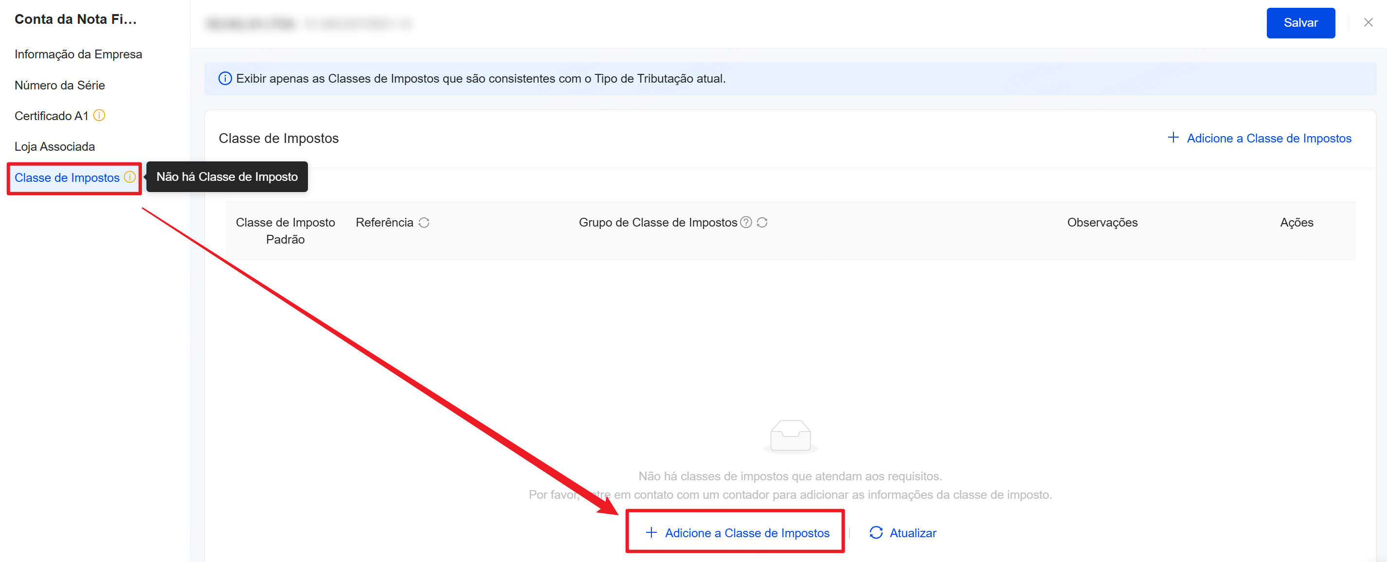 1. Antes de fazer qualquer alteração em classe de impostos, consulte com seu contador profissional para evitar problemas fiscais ou multas causados por configurações incorretas.
