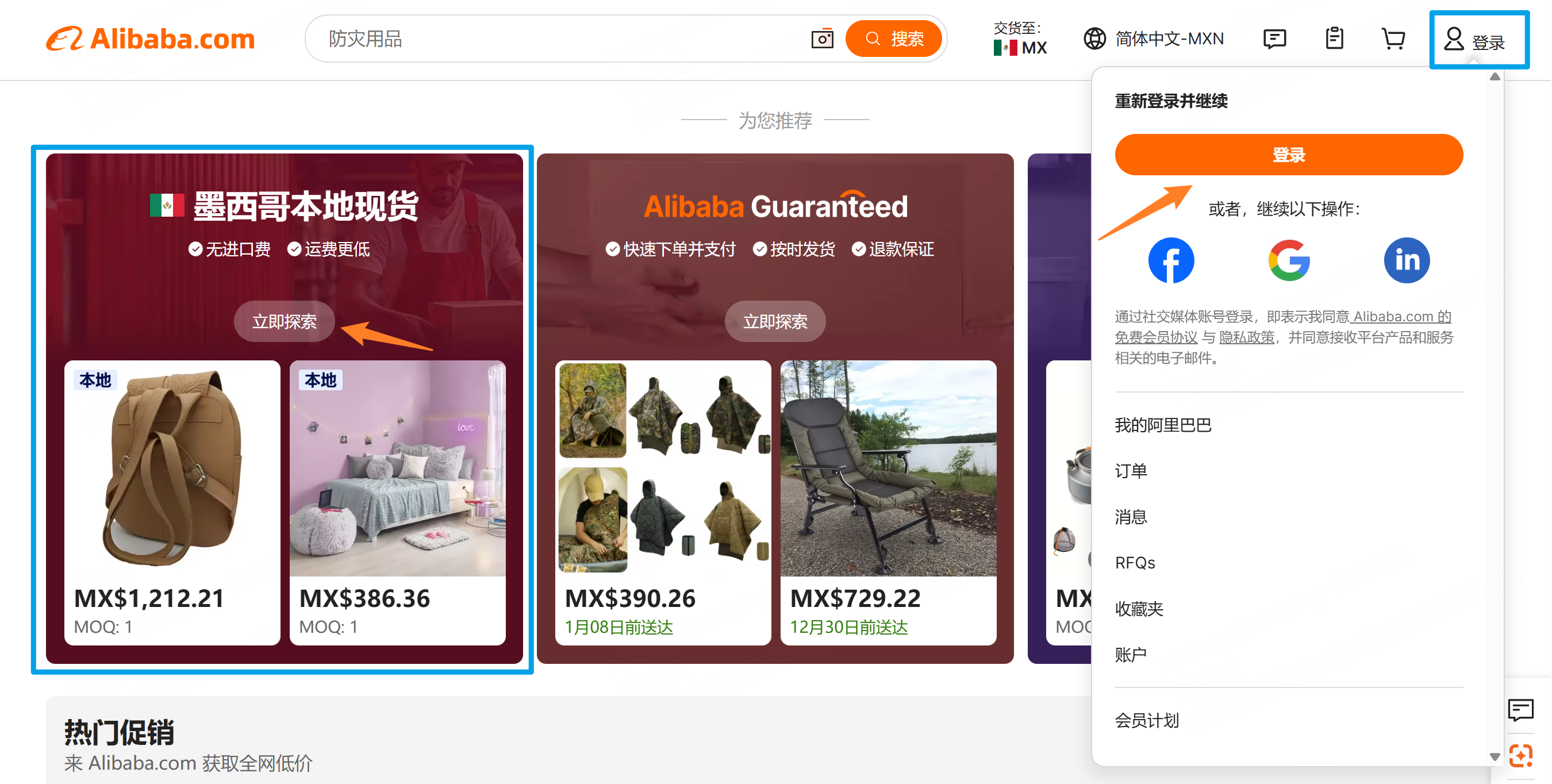 步骤 2:进入「墨西哥本地现货专区」并选择商品