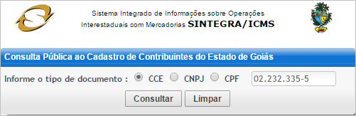 1.选择并填写CNPJ或CCE或CPF>>点击查询(Consultar)