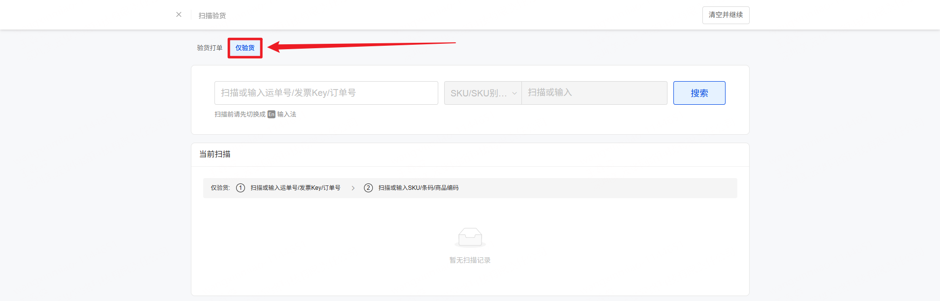 第一步:进入扫描验货>>仅验货页面