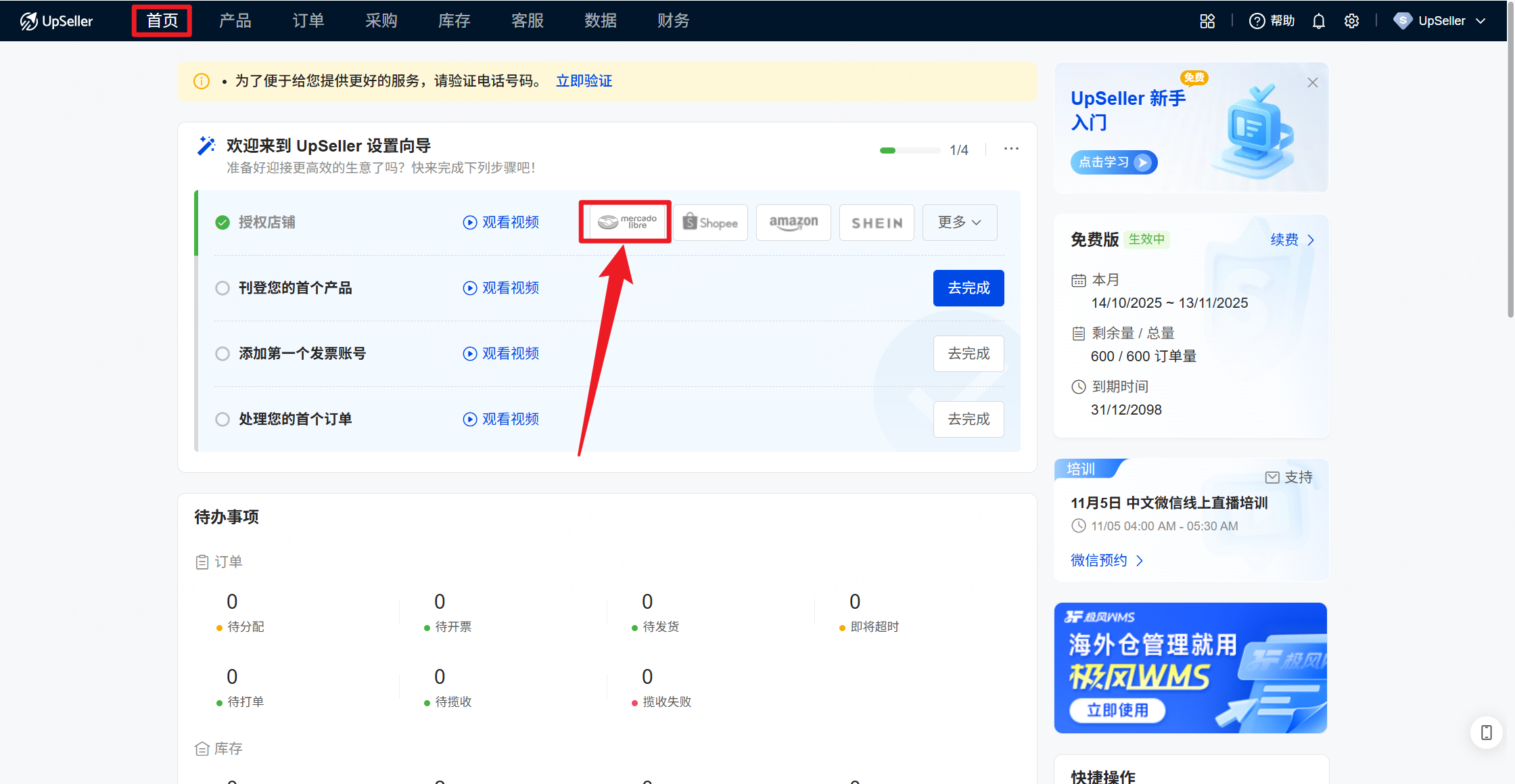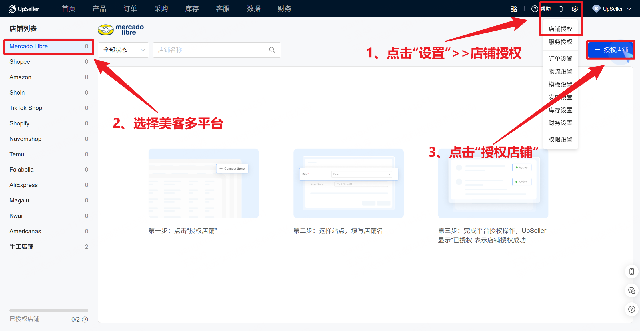 注意:当在UpSeller授权多个Mercado的账号时,需要根据不同的情况进行授权