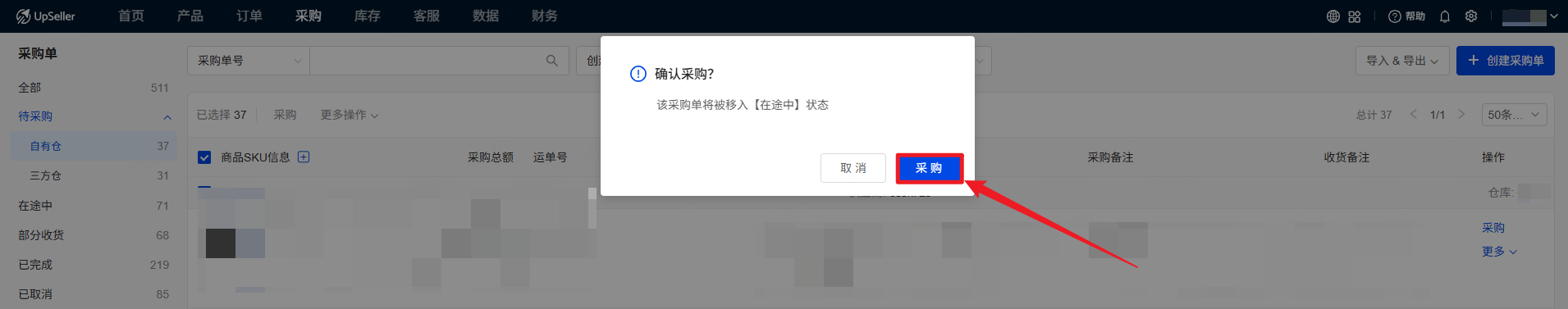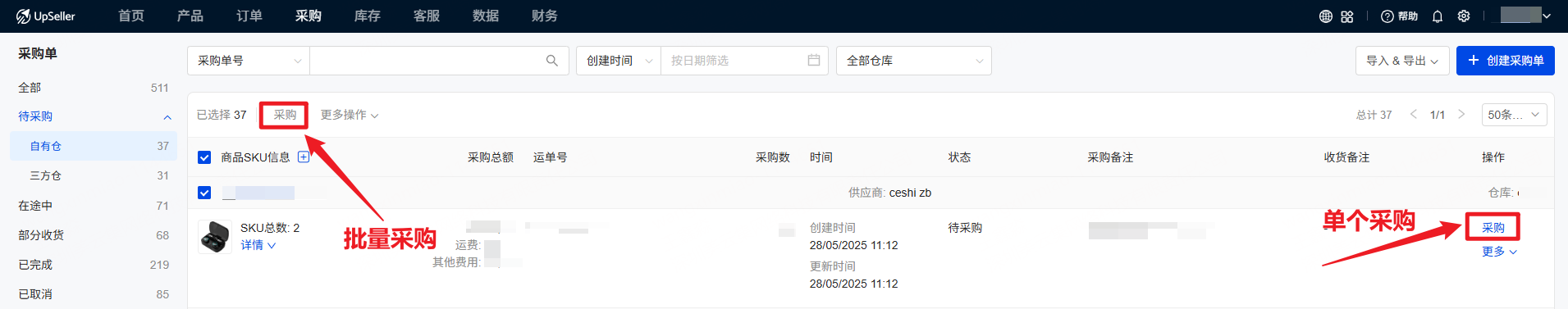 第一步:进入“待采购”状态,创建采购单,具体操作请查看>> https://www.upseller.com/zh-CN/doc-article/1101