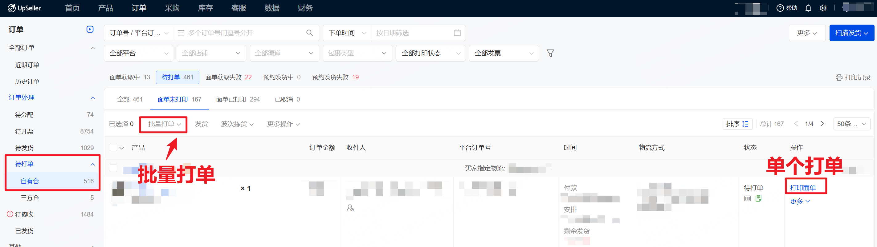 第三步:【待打单】打印面单并预约发货