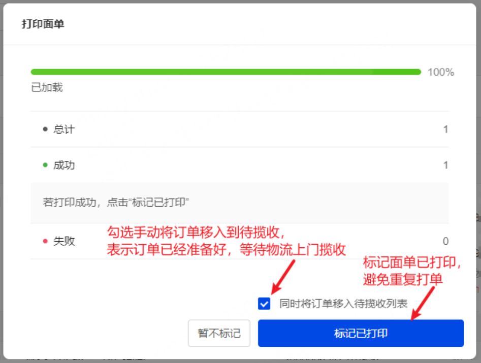 注意:建议打印后标记订单为已打印,避免重复打单