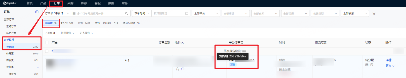 1. 只有仍在预售期的订单才会进入到“待分配--待审核”,过了预售期 或 已在卖家中心标记为“我已有货”的订单不会进入
