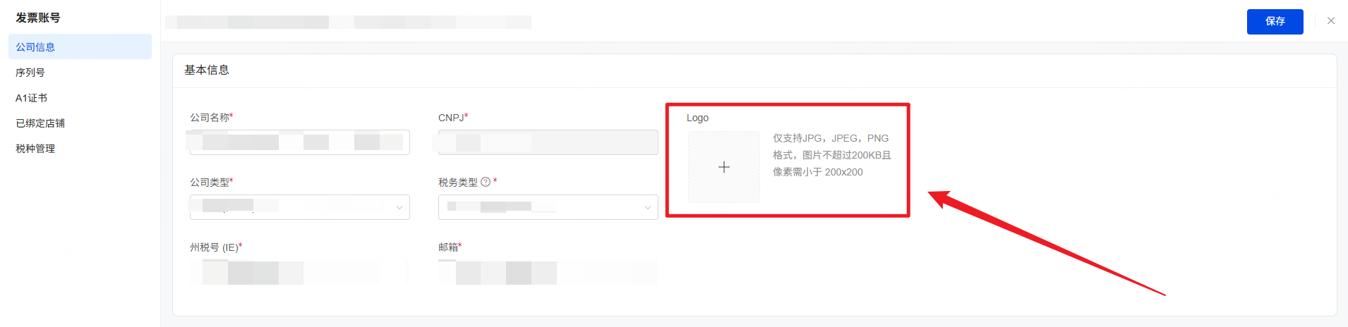 一、功能介绍 为更好地对企业品牌进行宣传推广,UpSeller现支持在A4 DANFE上加打公司Logo! 二、操作步骤 第一步:点击 设置 >> 发票设置,选择对应发票账号,点击“设置” 第二步:点击公司信息,上传Logo即可 注意:Logo仅支持JPG,JPEG,PNG 格式,图片不超过200KB,且像素需小于 200x200