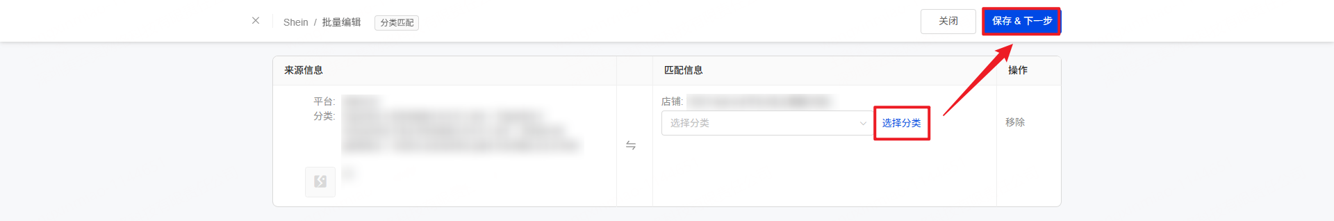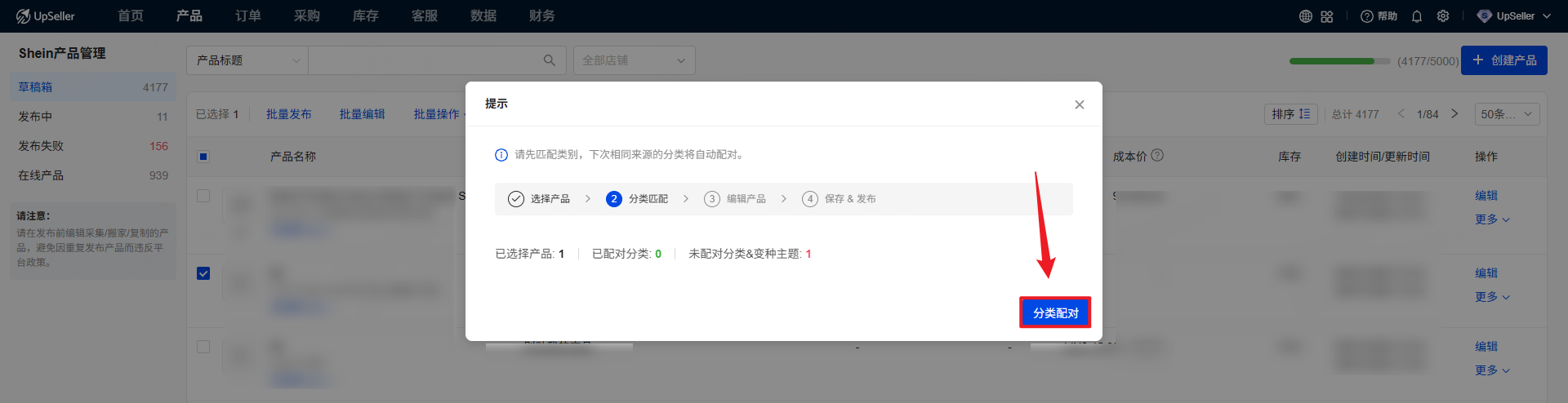 第三步:点击“分类配对”对产品进行分类匹配,点击“保存&下一步”进入批量编辑页面
