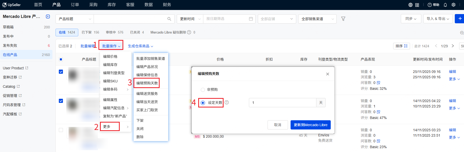 UpSeller 支持批量为产品设置预购天数,这大大节省运营时间!