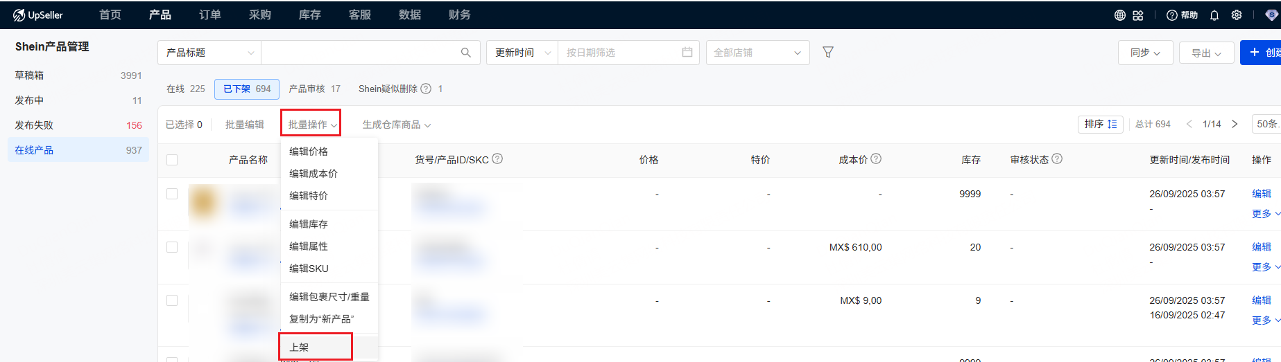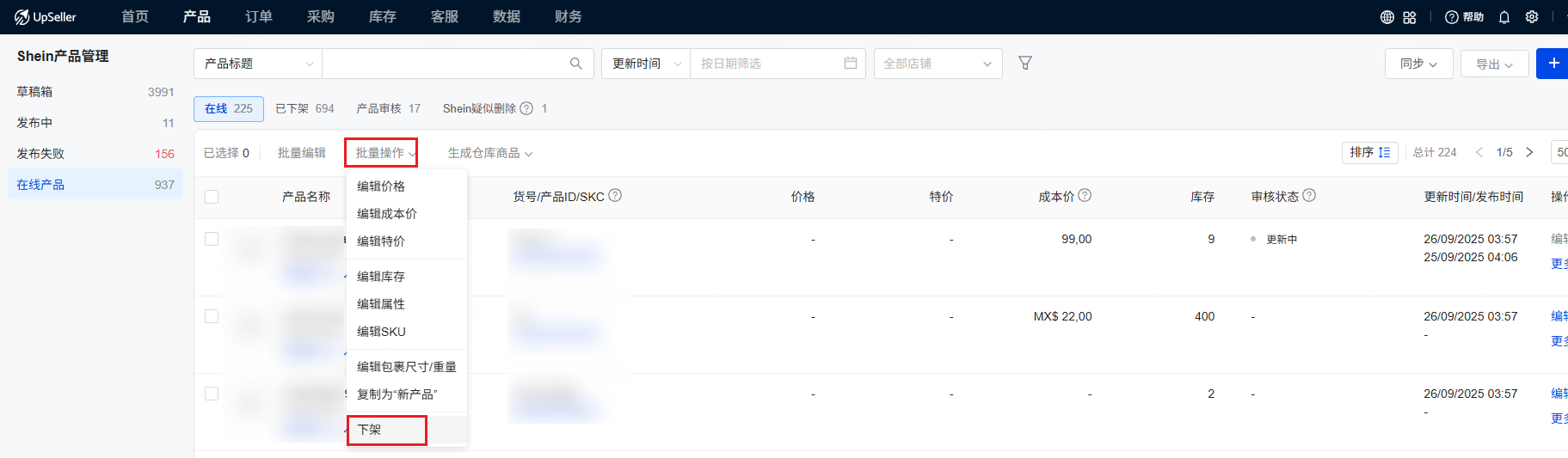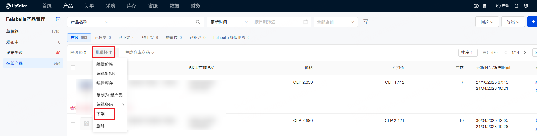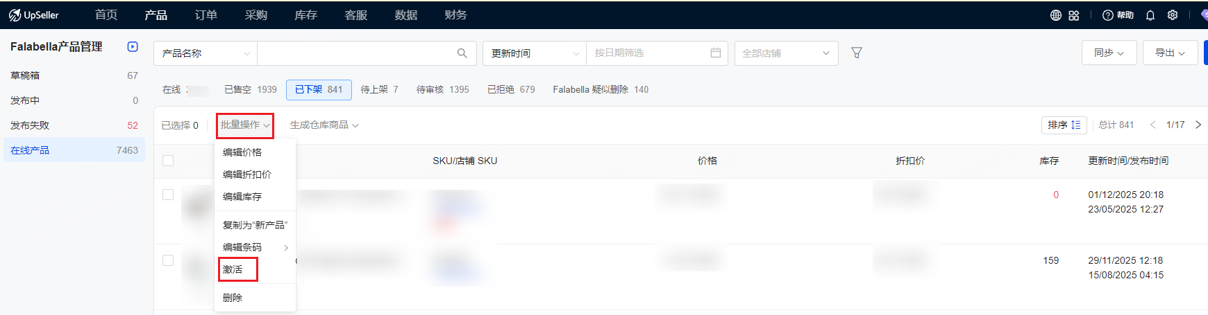 UpSeller 支持批量下架、上架产品,这大大节省运营时间!