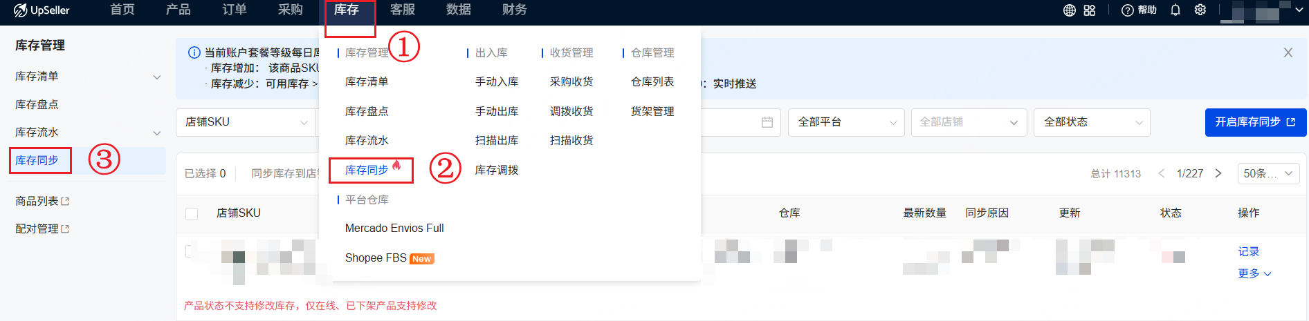 3、美客多Full物流的订单和亚马逊FBA的订单不支持在UpSeller上库存扣减和库存同步,即对应商品不会进行扣减,更不会将最新库存数据同步至各店铺
