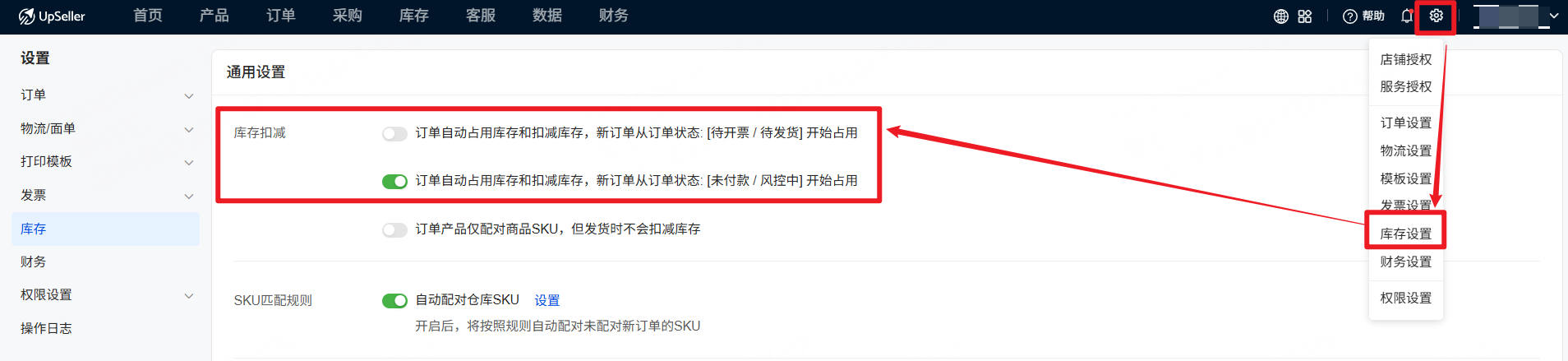 第一步:处理三方仓订单前,请确认开启库存扣减设置