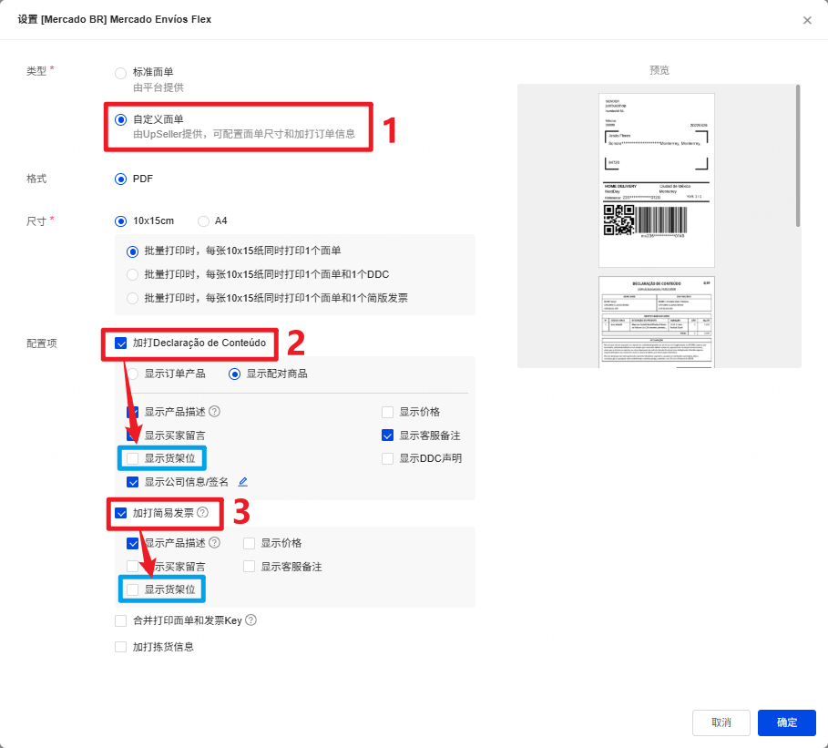 物流设置:如何在巴西DDC/ 简易发票上打印商品货架位?