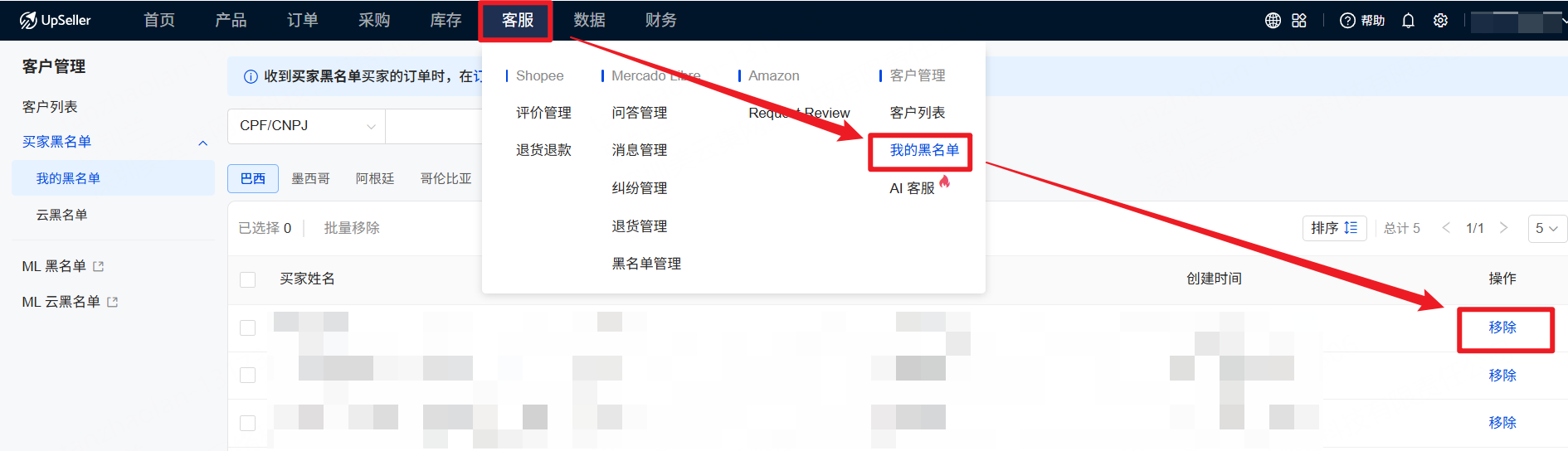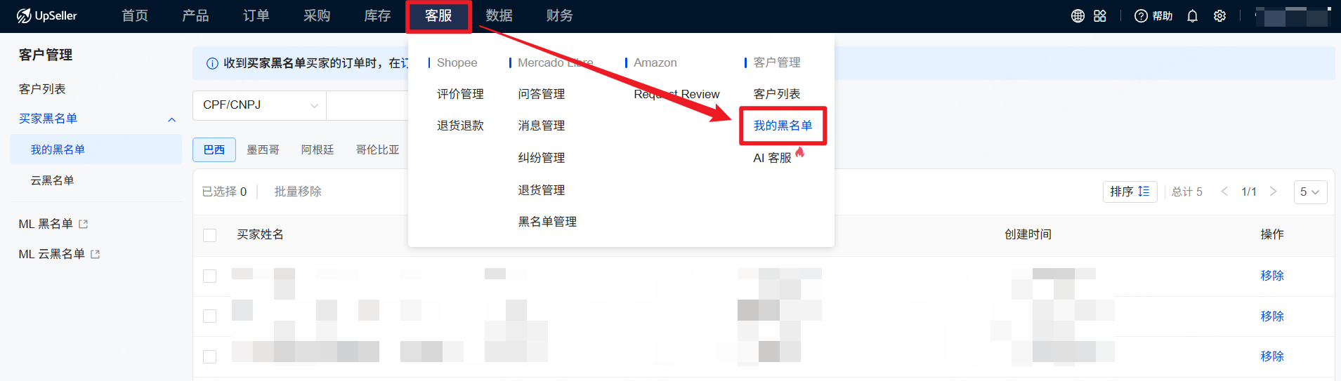 入口:【客服】模块>> 客户管理>> 我的黑名单