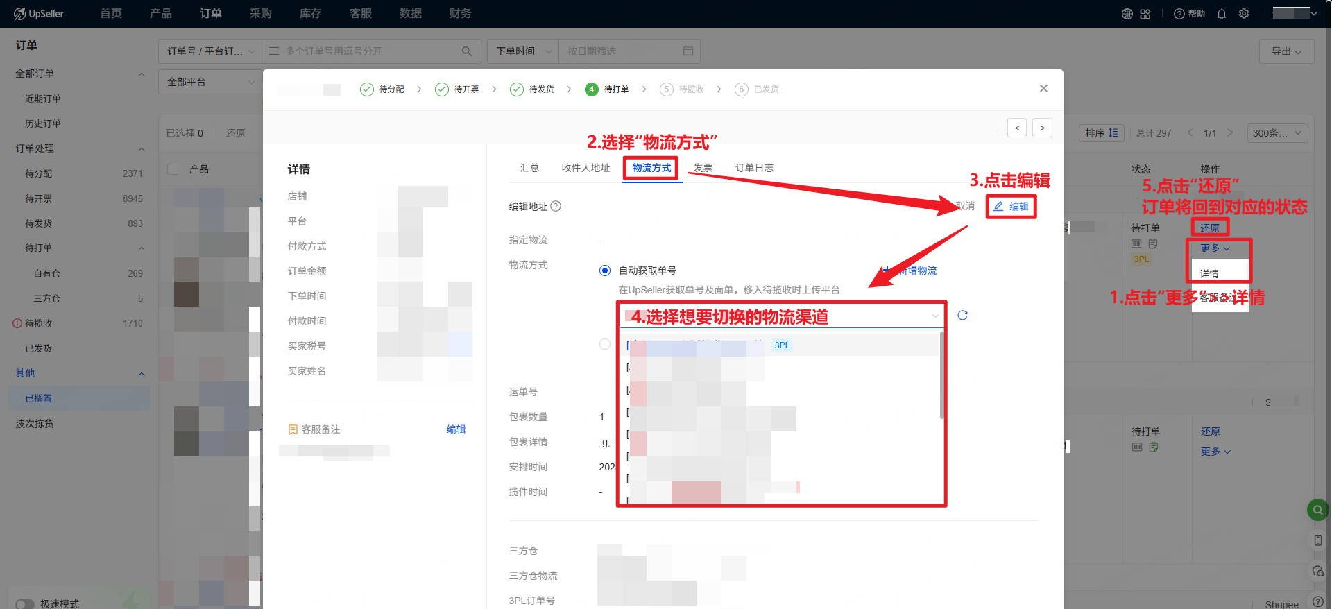 除了平台指定物流的订单之外,UpSeller还支持将线下物流订单、手工订单推送三方仓处理