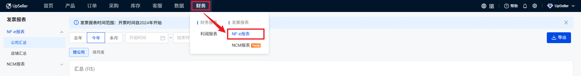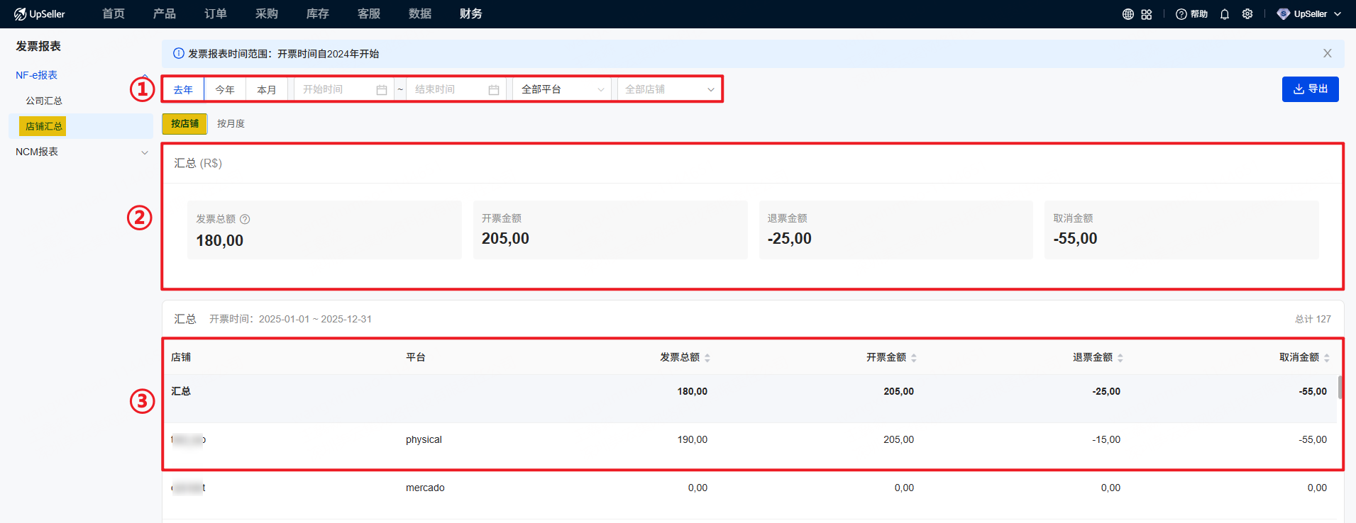 目前有两种发票报表:公司NF-e报表和店铺NF-e报表