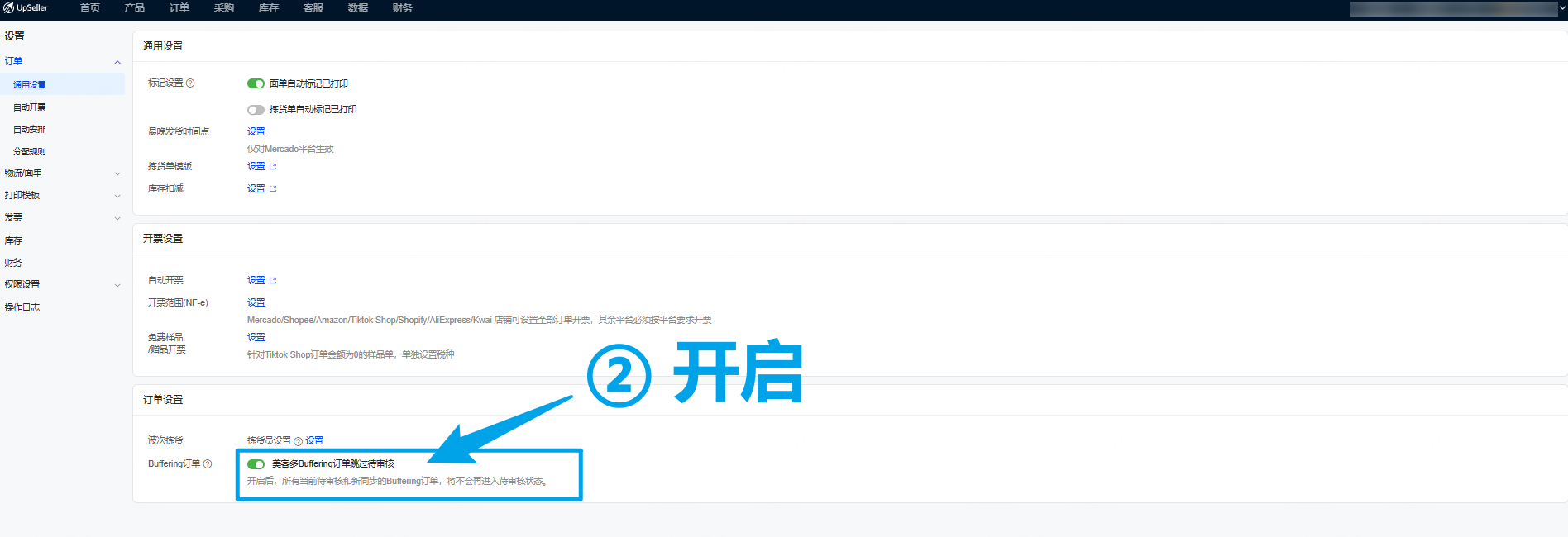 一、什么是Buffering订单? 当电商旺季,美客多(Mercado Libre)平台因运力不足无法保证全部订单发货时,平台会对部分订单指定发货日期。若在允许发货日期时发货将不会影响店铺声誉。在允许发货日期前无法将发票上传到平台和打印面单! 二、操作步骤 待审核状态下的Buffering订单不占用库存。如需提前占用,需进入设置页面,开启Buffering订单设置开关。(开启后,所有当前待审核和新同步的Buffering订单,将不会再进入待审核状态)