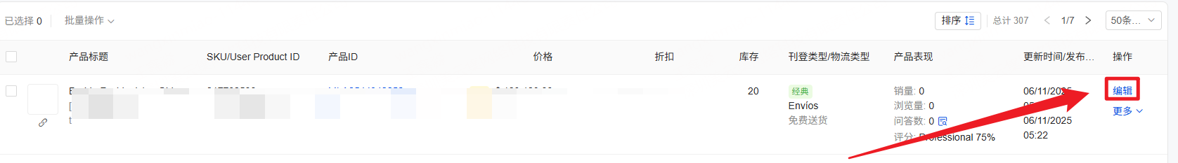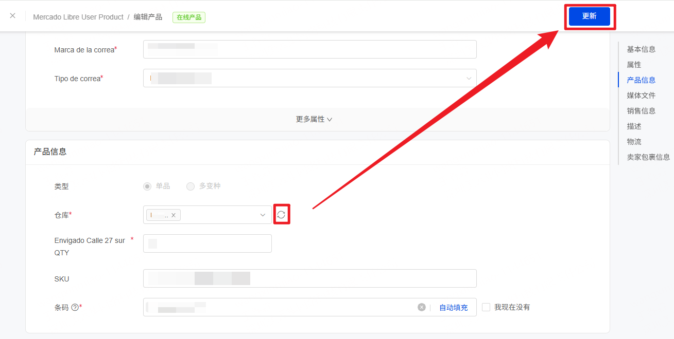 报错信息: [Mercado] stock-locations not found 报错原因: 平台反馈未检测到仓库信息,导致产品发布失败。 解决方案: 1、进入产品编辑页 2、点击仓库旁边同步按钮,同步仓库信息,然后重新发布
