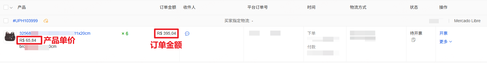 订单金额与产品单价,对应到订单界面,如下图所示: