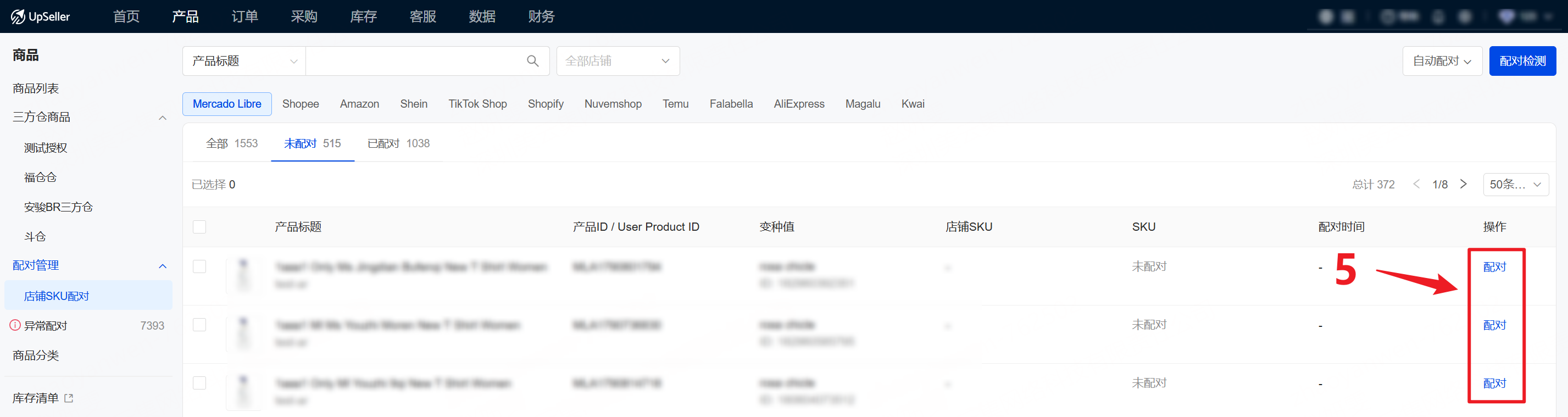 4、进入对平台的未配对列表,选择产品,点击“配对”,即可重新建立配对关系